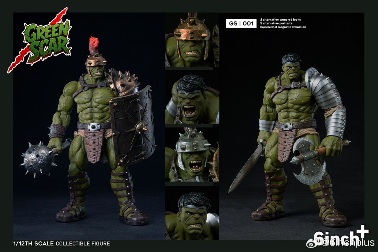 Grab your battle gear and clear some shelf space — the arena is calling! 6inch+ has officially revealed their first release: the GS001 Green Scar, a 1/12 scale figure inspired by the legendary Planet Hulk storyline. And yes, this Hulk is all geared up and ready to smash his way into your collection!