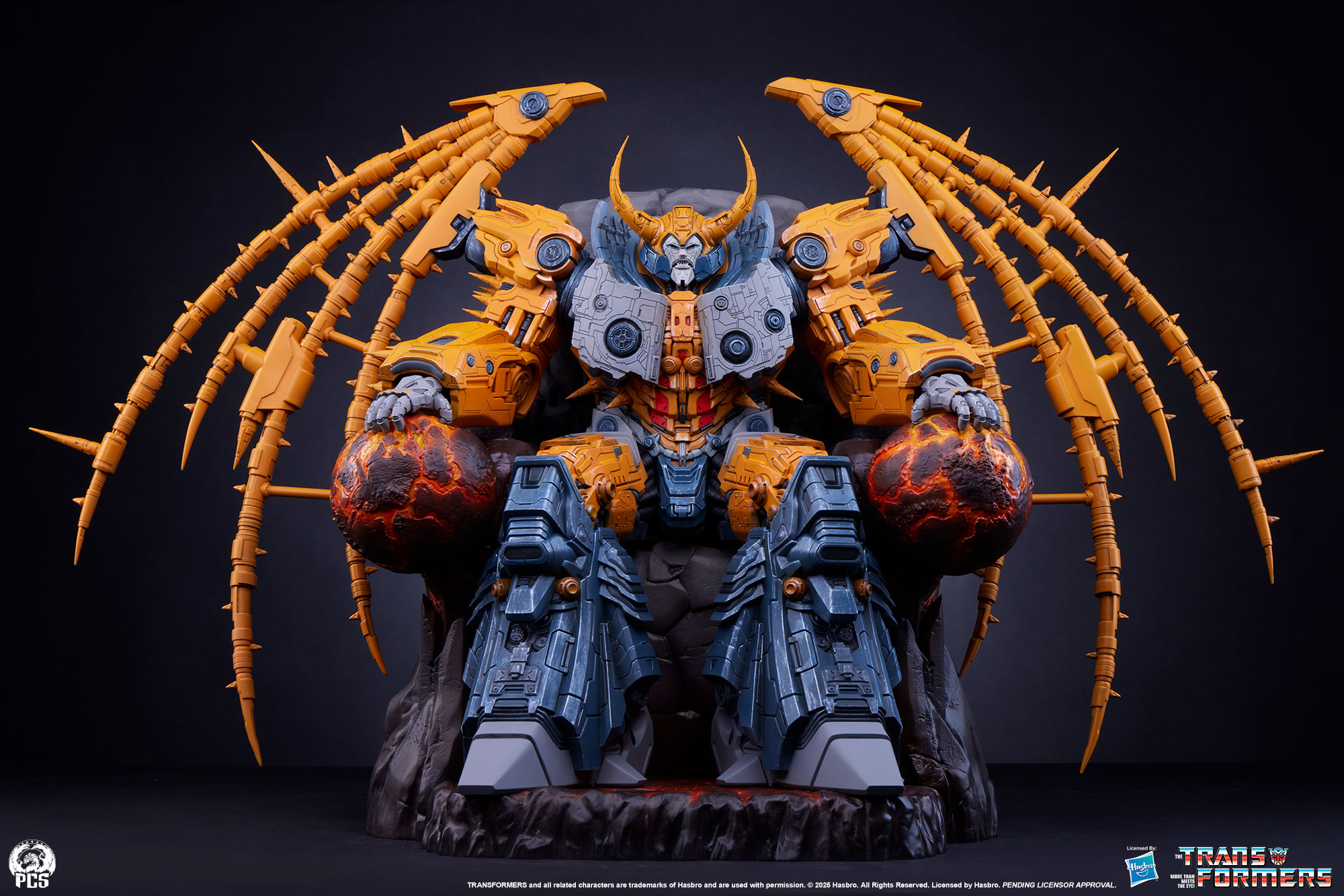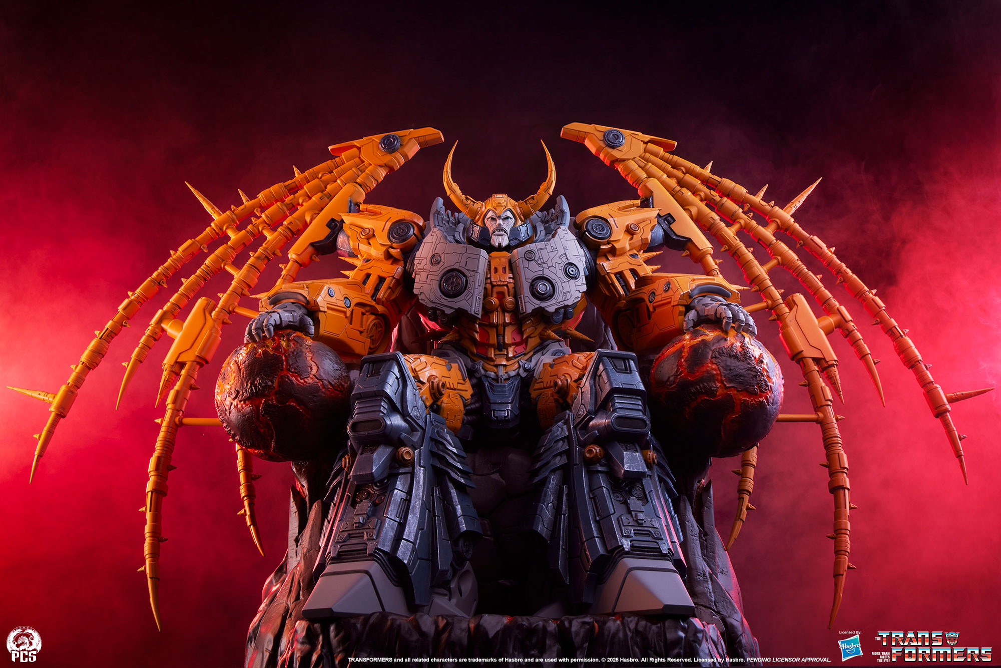 Premium Collectibles Studio has just dropped a jaw-dropping collectible for Transformers fans — a massive Unicron Museum Scale Statue. This beast stands 28 inches tall with a whopping 38-inch wingspan, showing the planet-eating villain chilling on a throne made from an asteroid… while casually crushing two planets in his hands.