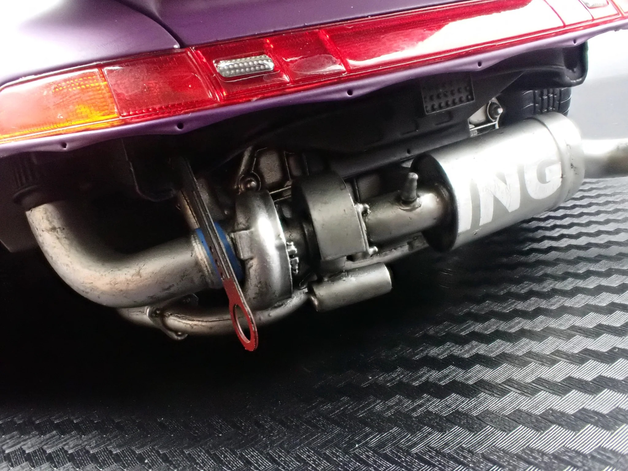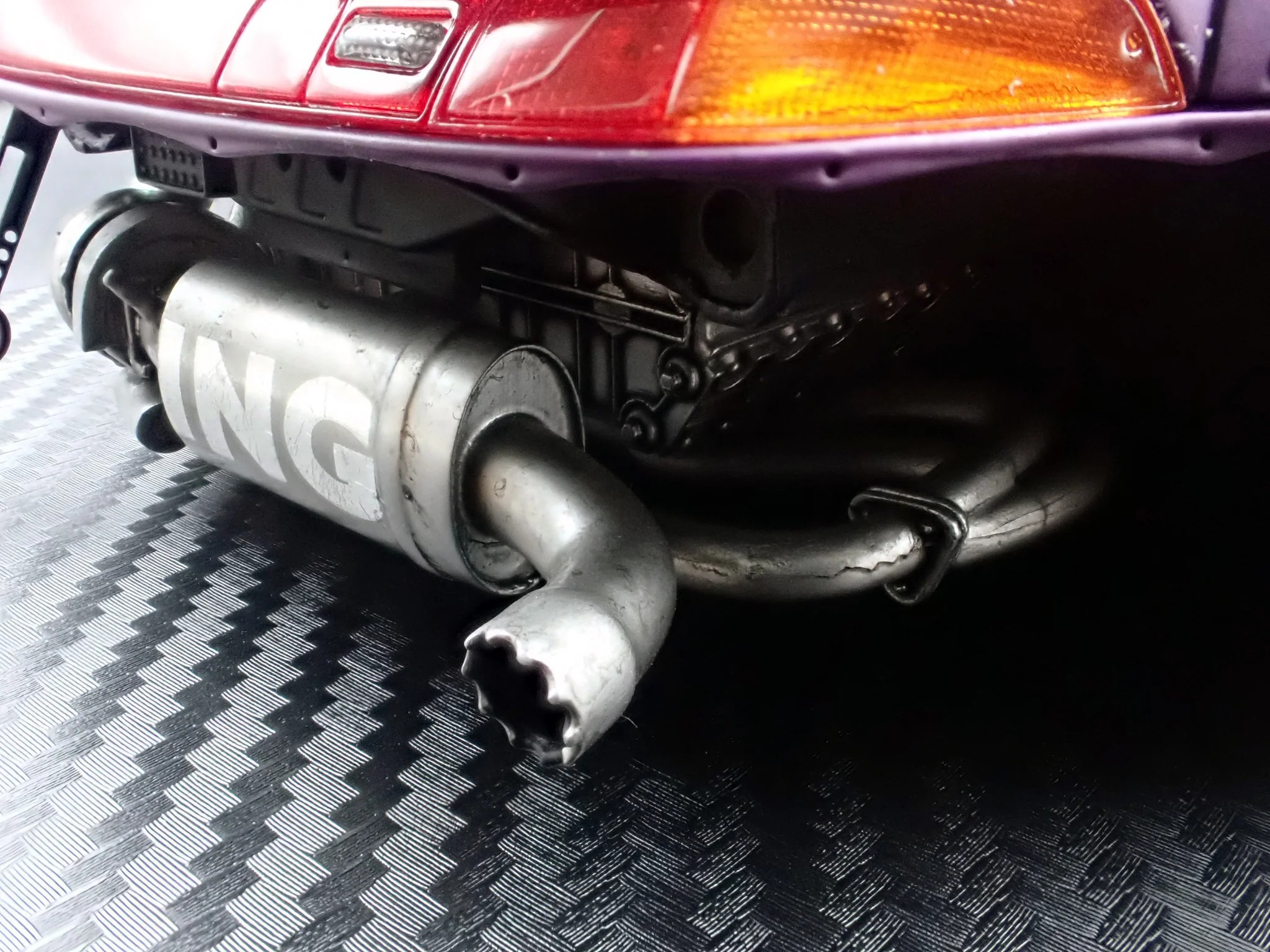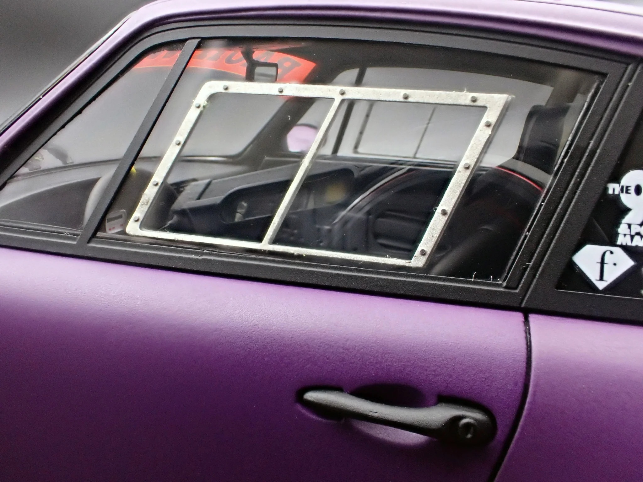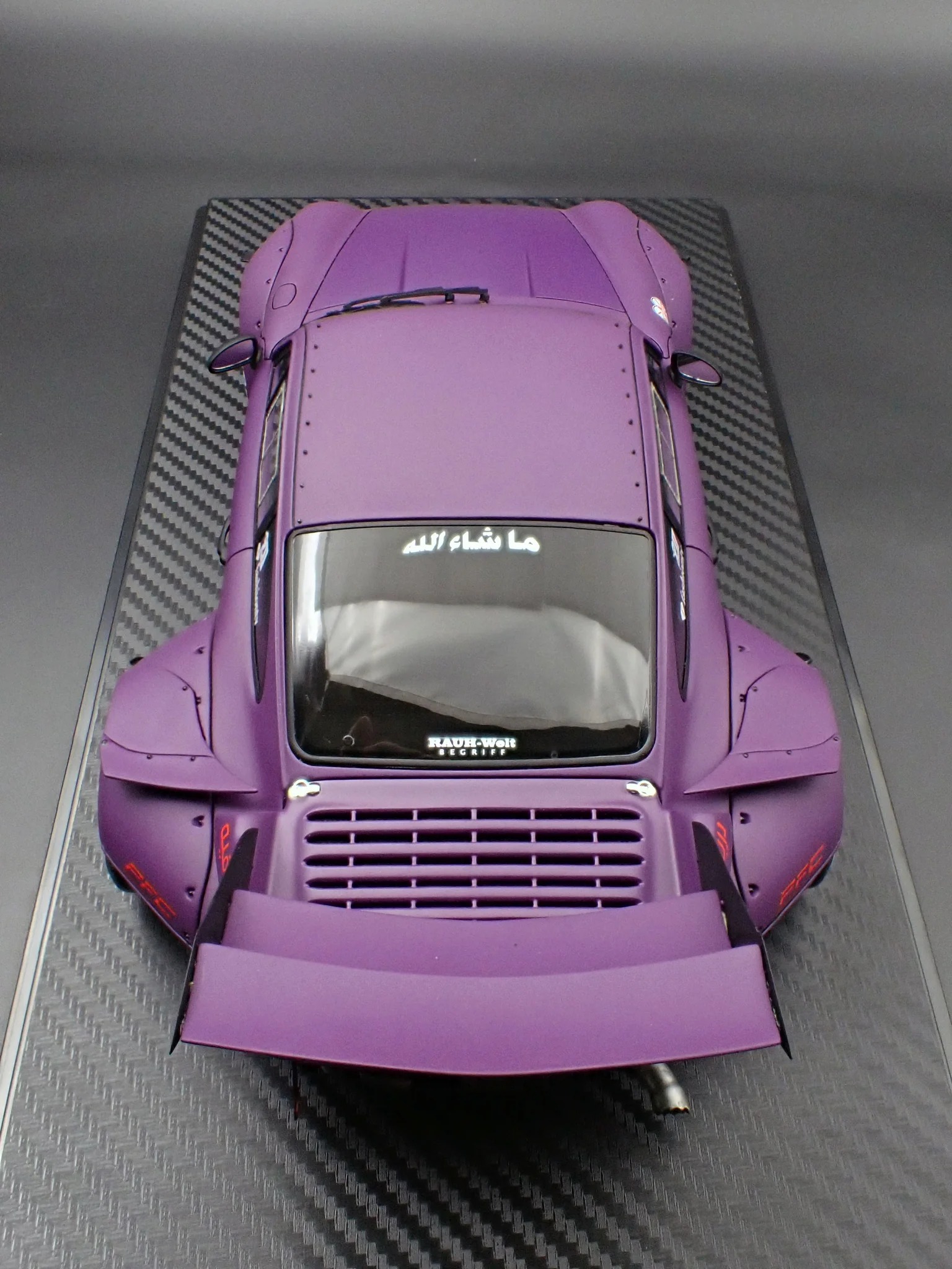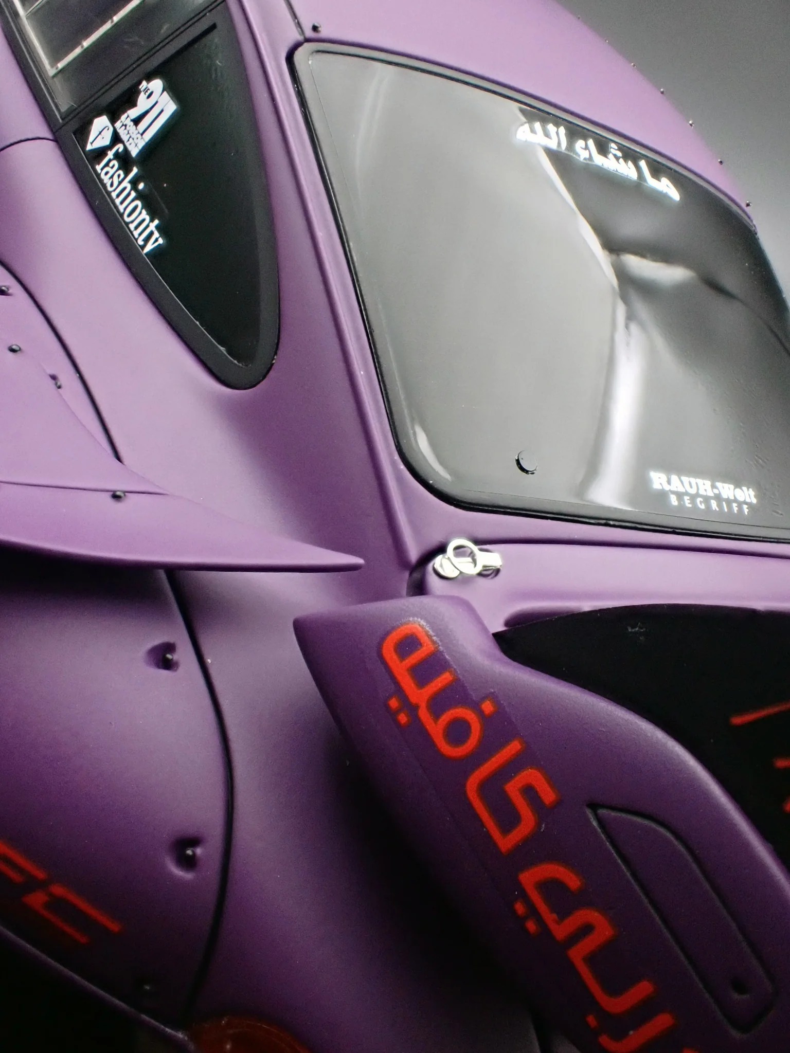 Produced by Ignition Model, the IG4035 reproduces the RWB 993 in 1/18 scale using resin construction. The exterior is finished in matte purple and sits on WORK S1-style 18-inch wheels in black, paired with a lowered stance that reinforces its track-oriented intent. This version adopts a rear-bumperless layout and a headlightless front, with the headlights embedded directly into the front bumper for a distinctly motorsport-driven appearance.