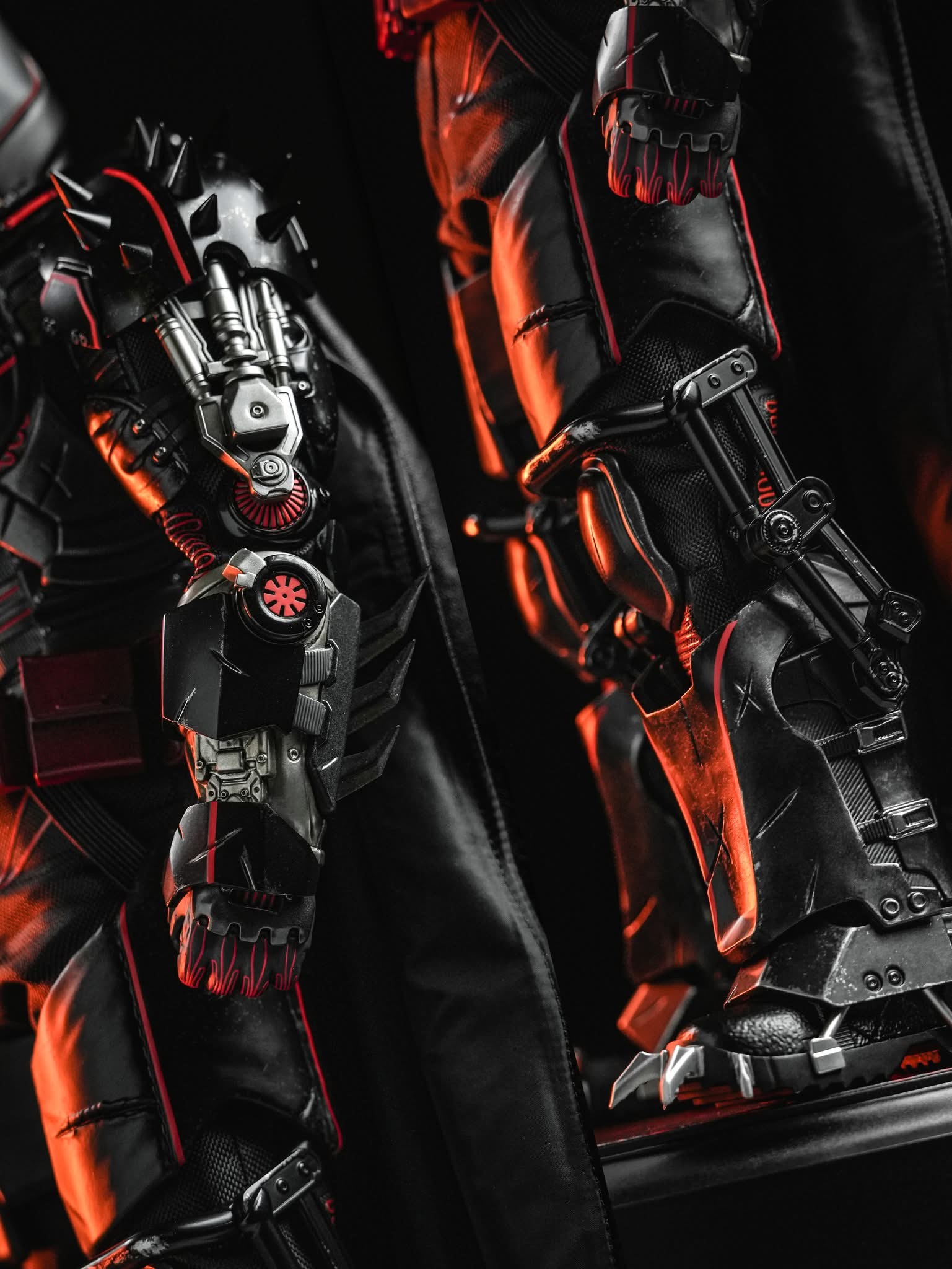 - Red utility belt and black armoured boots