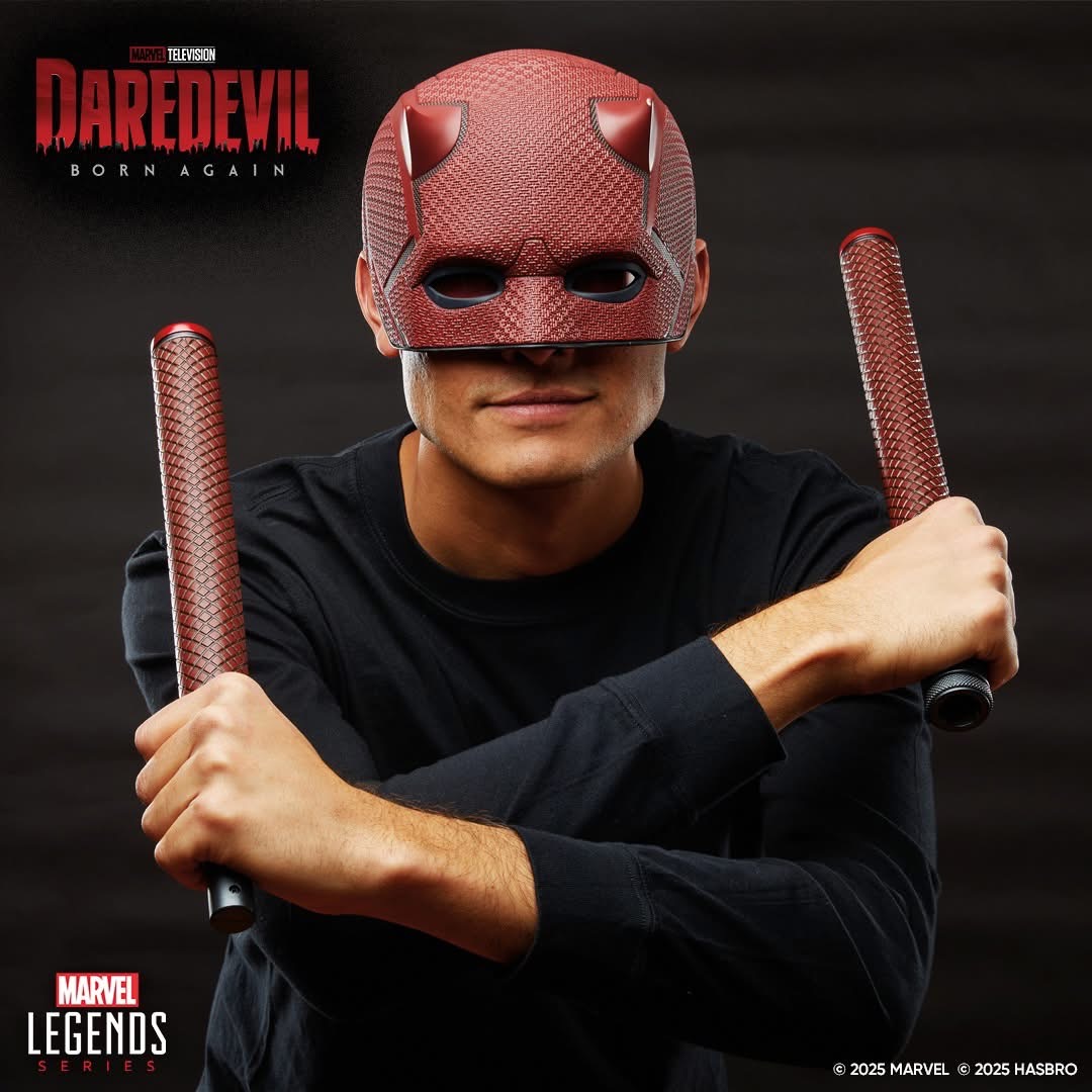 Hasbro is set to release a new Marvel Legends role-play set featuring Daredevil’s mask and billy club from the Born Again series. The 1:1 scale set includes both wearable and display elements.
