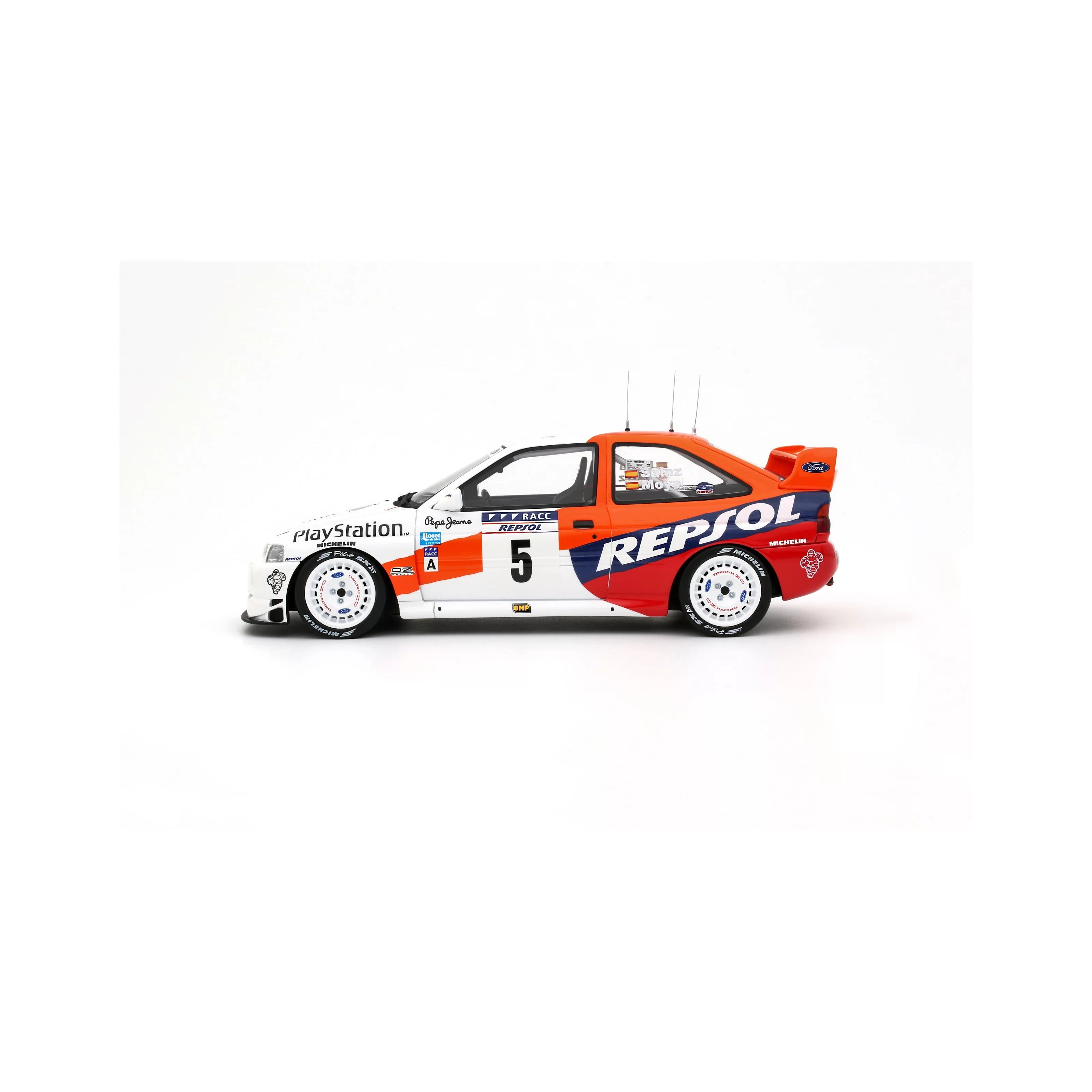 The resin model reproduces the Team Repsol livery carried by the number 5 Ford Escort WRC at Rallye Catalunya. The vehicle is based on the M4A4 chassis with HVSS suspension, reflecting the late evolution of the Escort WRC platform under Ford’s works team. In the 1997 event, Sainz aimed for a home victory after two early-season podiums but faced mechanical issues that dropped him outside podium contention.