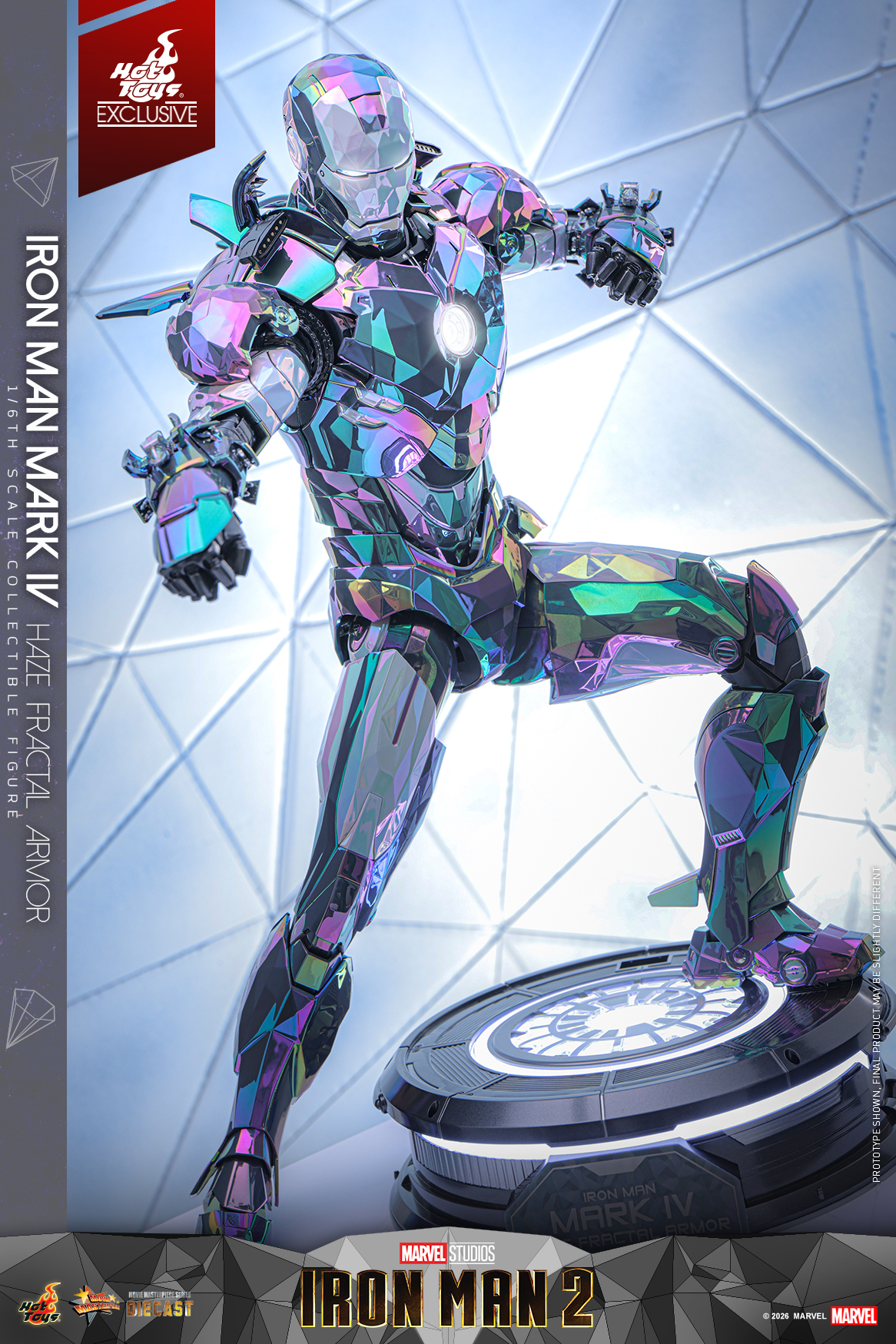 Hot Toys presents the Iron Man Mark IV (Haze Fractal Armour) as a 1/6th scale collectible figure based on Iron Man 2, introducing a reworked version of the classic suit with a geometric, faceted armour design and a two-toned grey finish. Released as a Hot Toys Exclusive, the figure is limited to 2,500 units in selected markets.