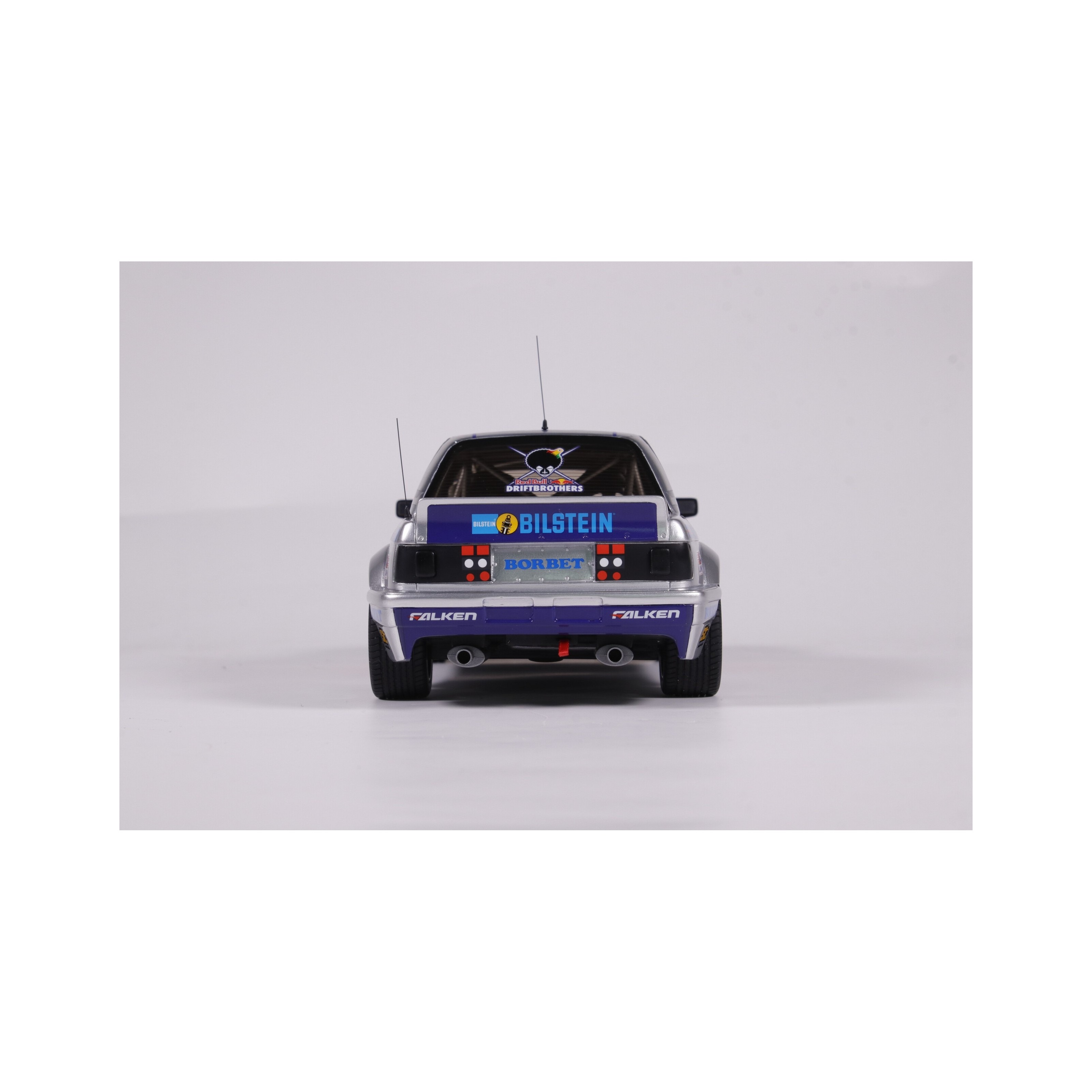 The OttOmobile BMW E30 V8 Drift model represents a customised 2023-era drift build rather than a period-correct road car. Retaining the unmistakable boxy form of the E30 sedan, the model reflects the transformation of the platform into a dedicated drift car, emphasising stance, attitude, and motorsport presence. Produced as a sealed resin model, the focus is placed on exterior accuracy and overall form rather than moving parts.