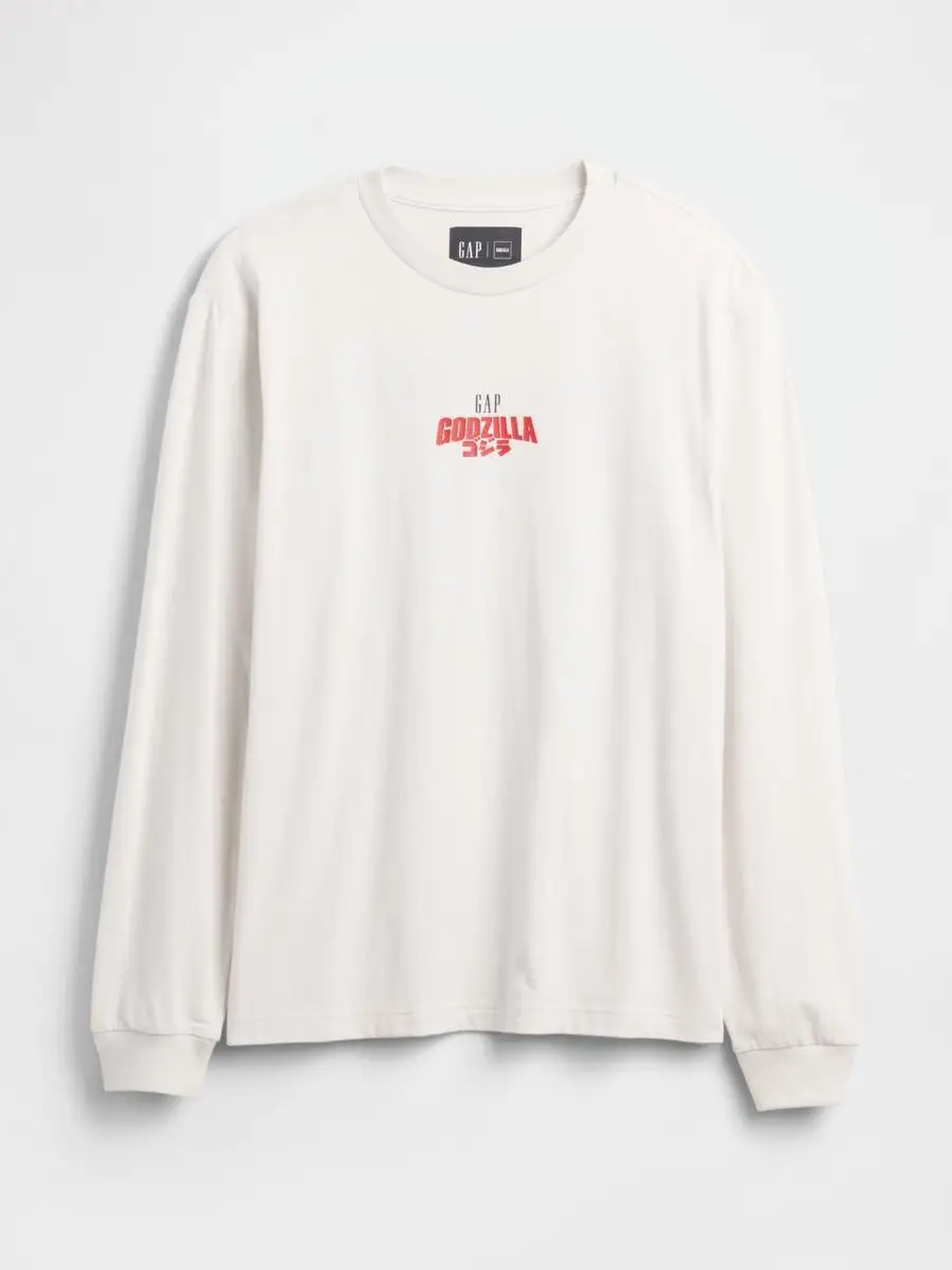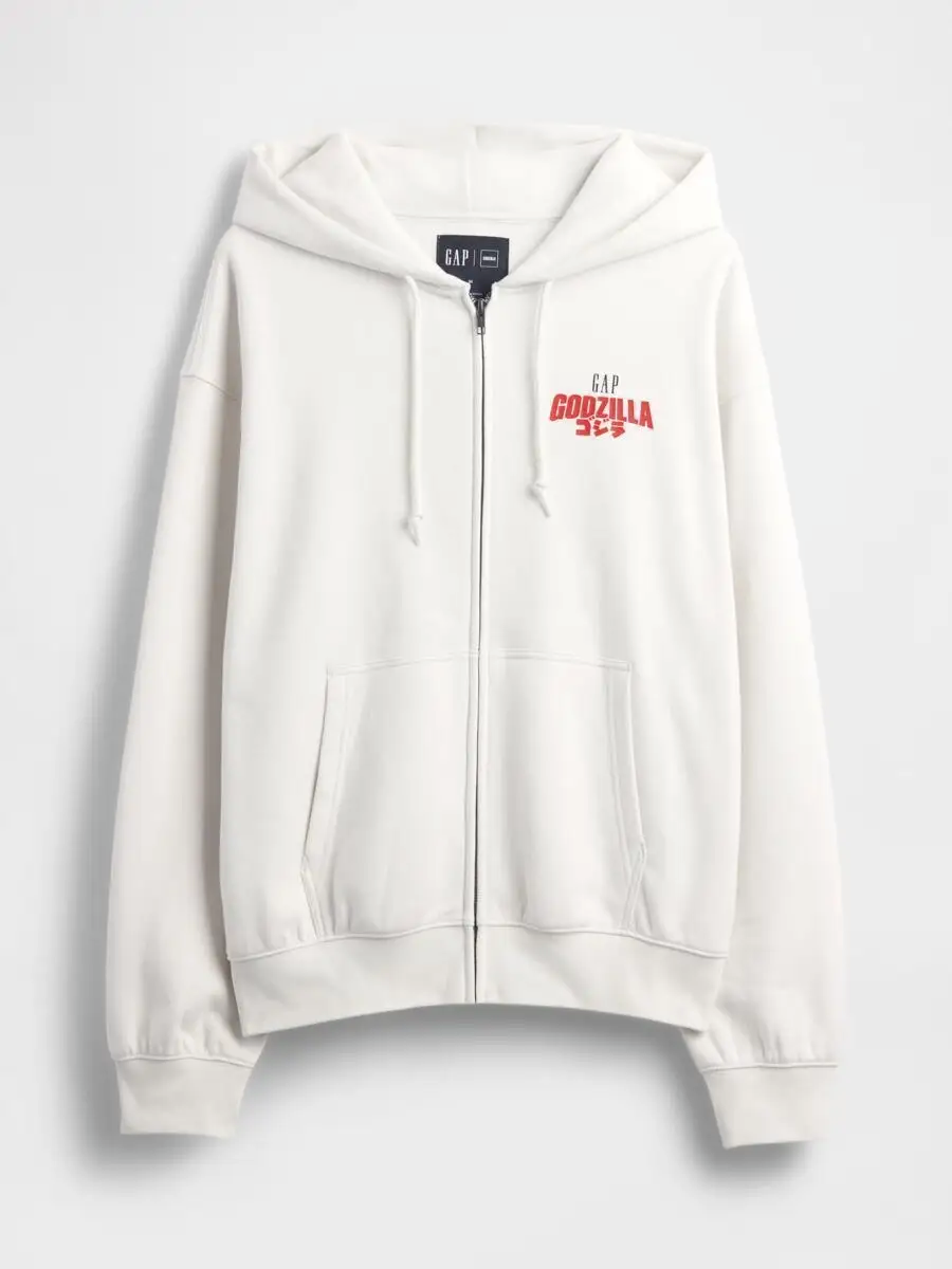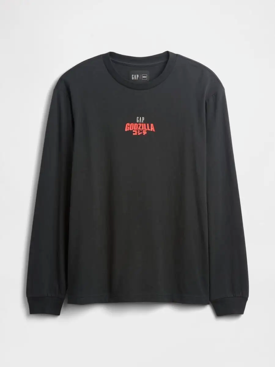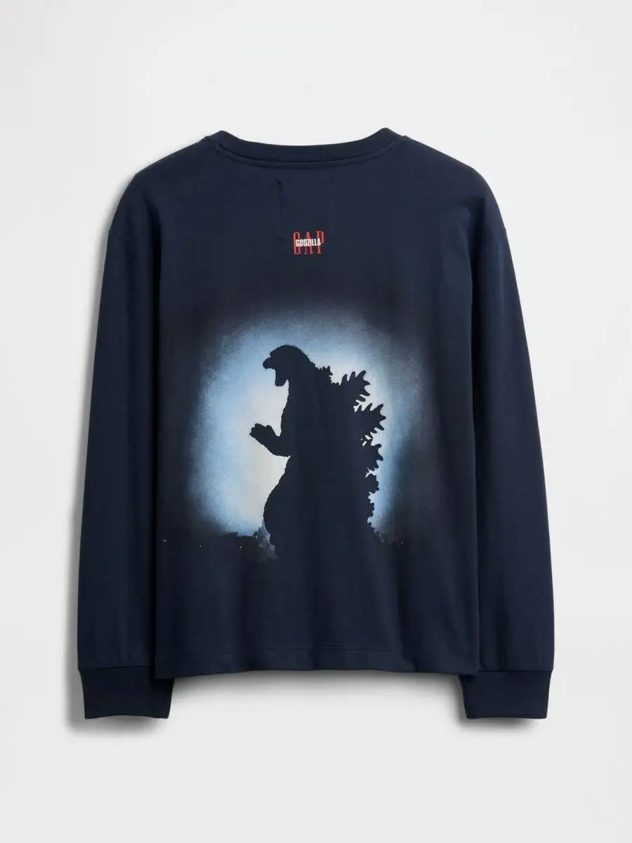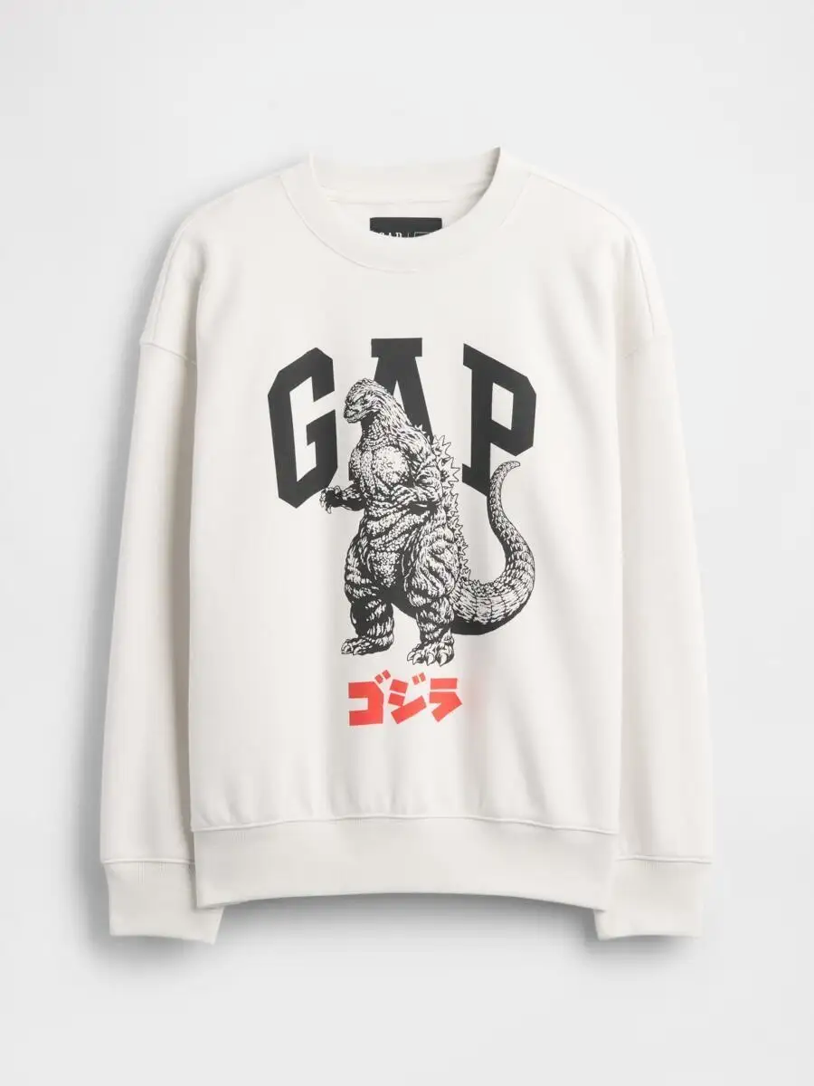 The GAP × Godzilla collection brings the King of the Monsters into everyday wear by combining Godzilla’s visual identity with GAP’s established casual design language. The lineup includes fleece crewneck sweatshirts, zip-up hoodies, and lightweight long-sleeve T-shirts, produced across both menswear and childrenswear ranges. This allows for coordinated adult and child outfits, positioning the collection as a family-friendly collaboration rather than a niche novelty release.