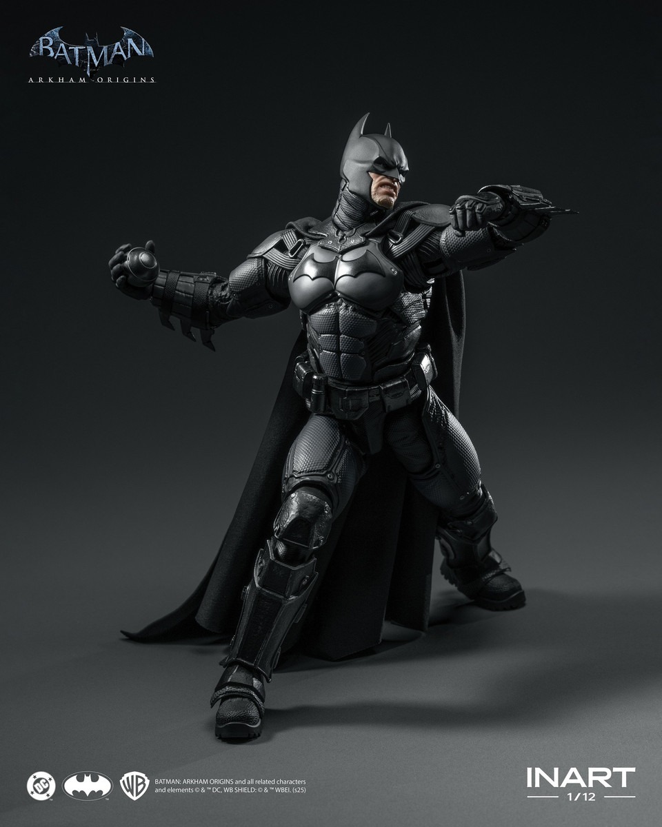 The INART 1/12 The Batman Arkham Origins Figure, product code MAG G0003, presents a compact yet detailed interpretation of the character, designed to balance articulation with display presence. The figure is supplied with multiple interchangeable components, allowing collectors to reflect different moods and equipment configurations associated with Batman’s early crime-fighting years.