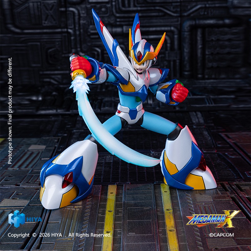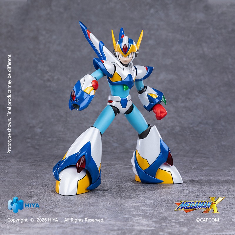 Hiya Toys has announced a new entry in its EXQUISITE BASIC Series, recreating X equipped with the Falcon Armour from the Mega Man X series. The Falcon Armour first appeared in Mega Man X5 as a specialised combat upgrade that enhanced X’s manoeuvrability and energy efficiency. In the game, the armour reduced the energy consumption of special weapons, increased damage resistance, and enabled limited aerial hovering. Its charged shot produced missiles capable of penetrating terrain, while the powerful “Giga Attack” released a screen-filling barrage of energy projectiles. In the sequel Mega Man X6, the armour returned in a damaged state, resulting in reduced flight capability and weaker charge shot penetration.