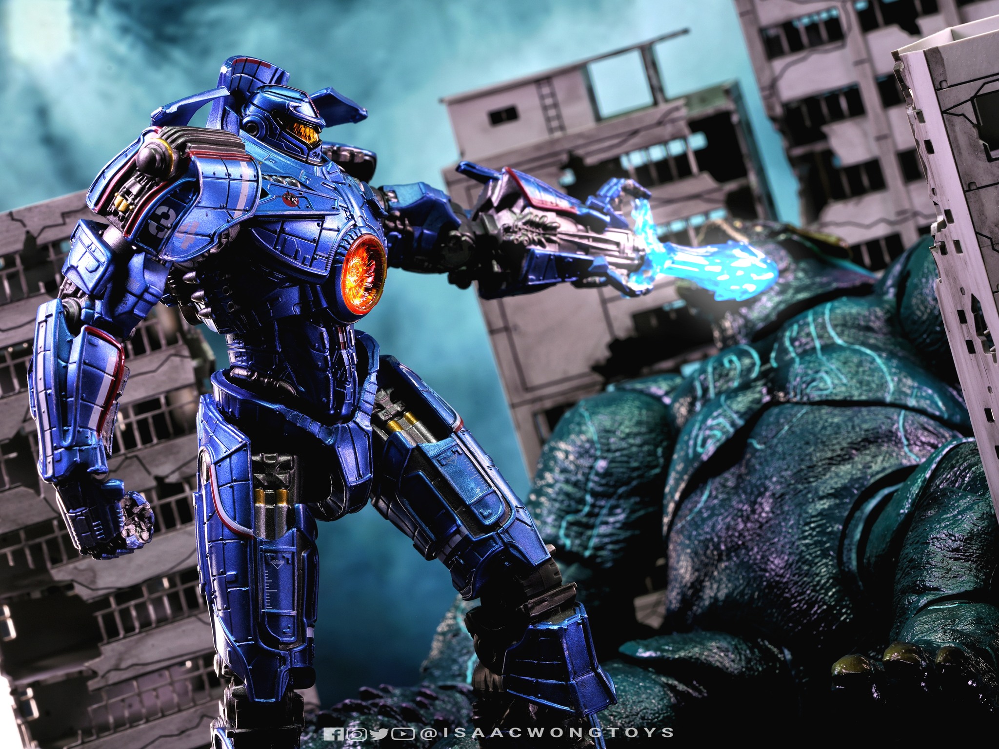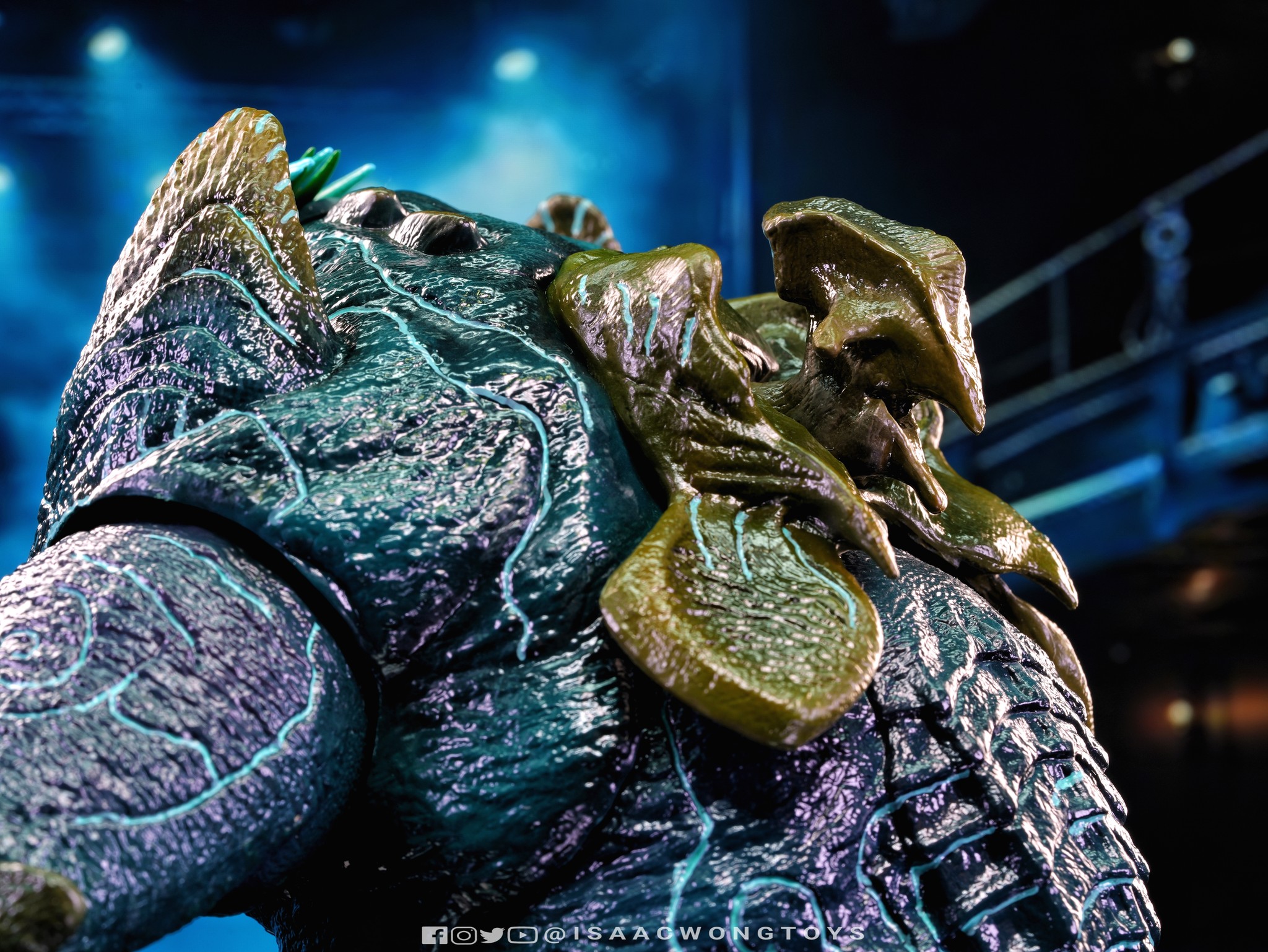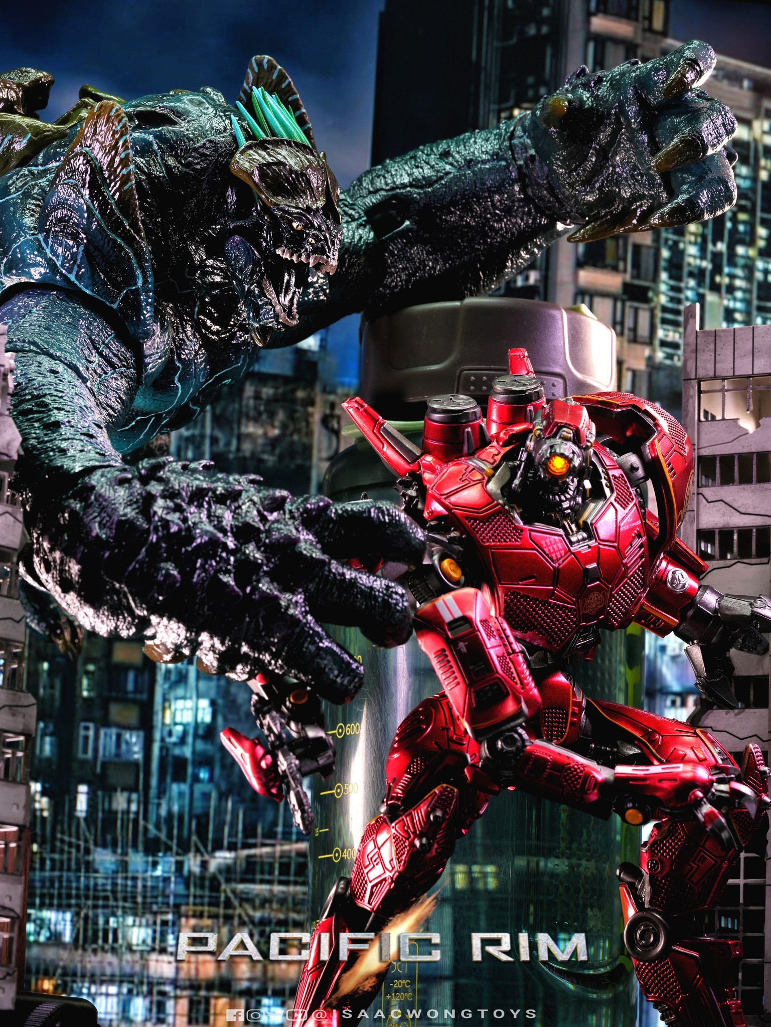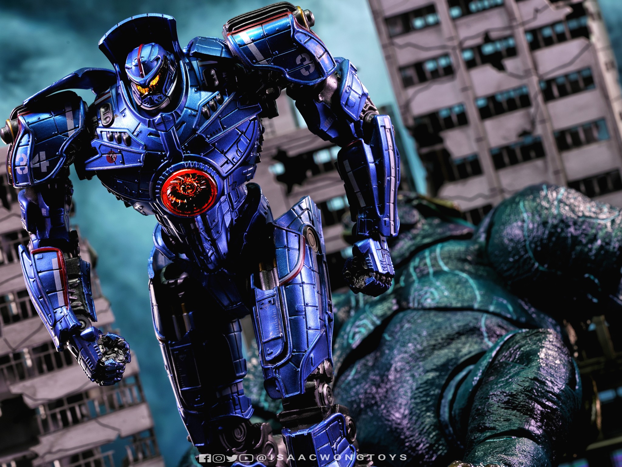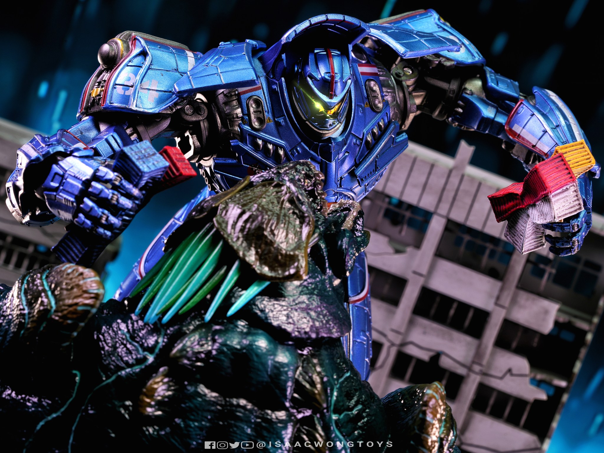 The figure arrives in packaging notably larger than that of Crimson Typhoon and Gipsy Danger, reflecting the creature’s mass within the line. Once removed, the sculpt shows a head proportion significantly larger than earlier consumer iterations such as the NECA version. The body carries substantial weight, and articulation across the head, arms and legs allows more posing flexibility than expected for a creature of this structure.