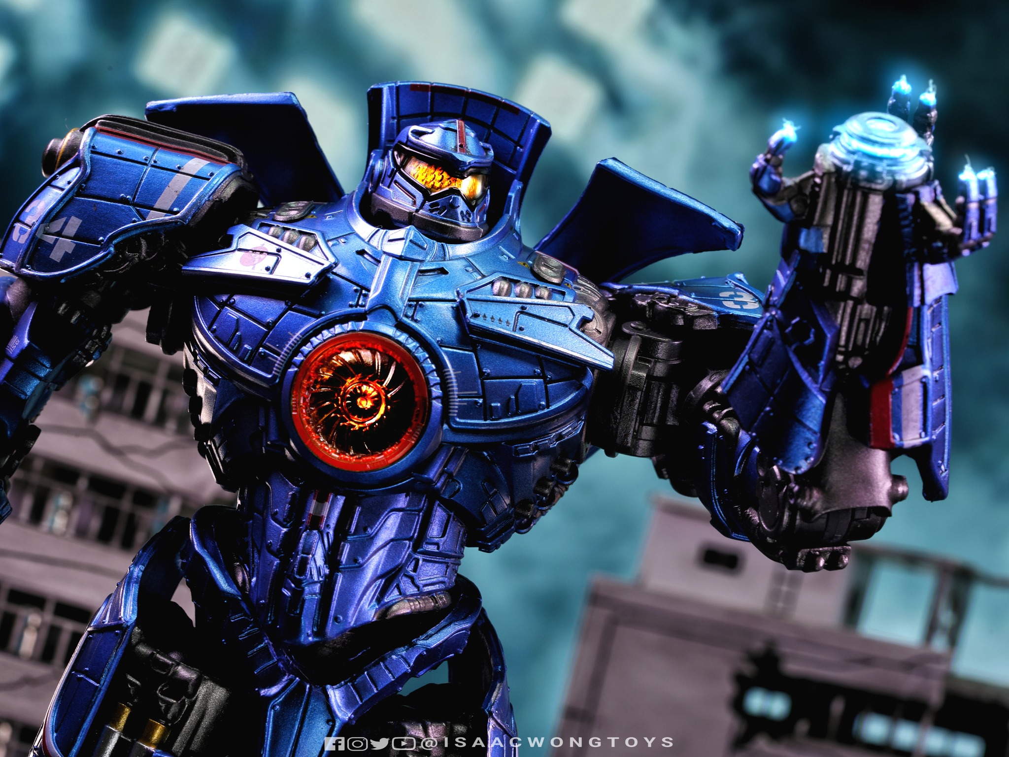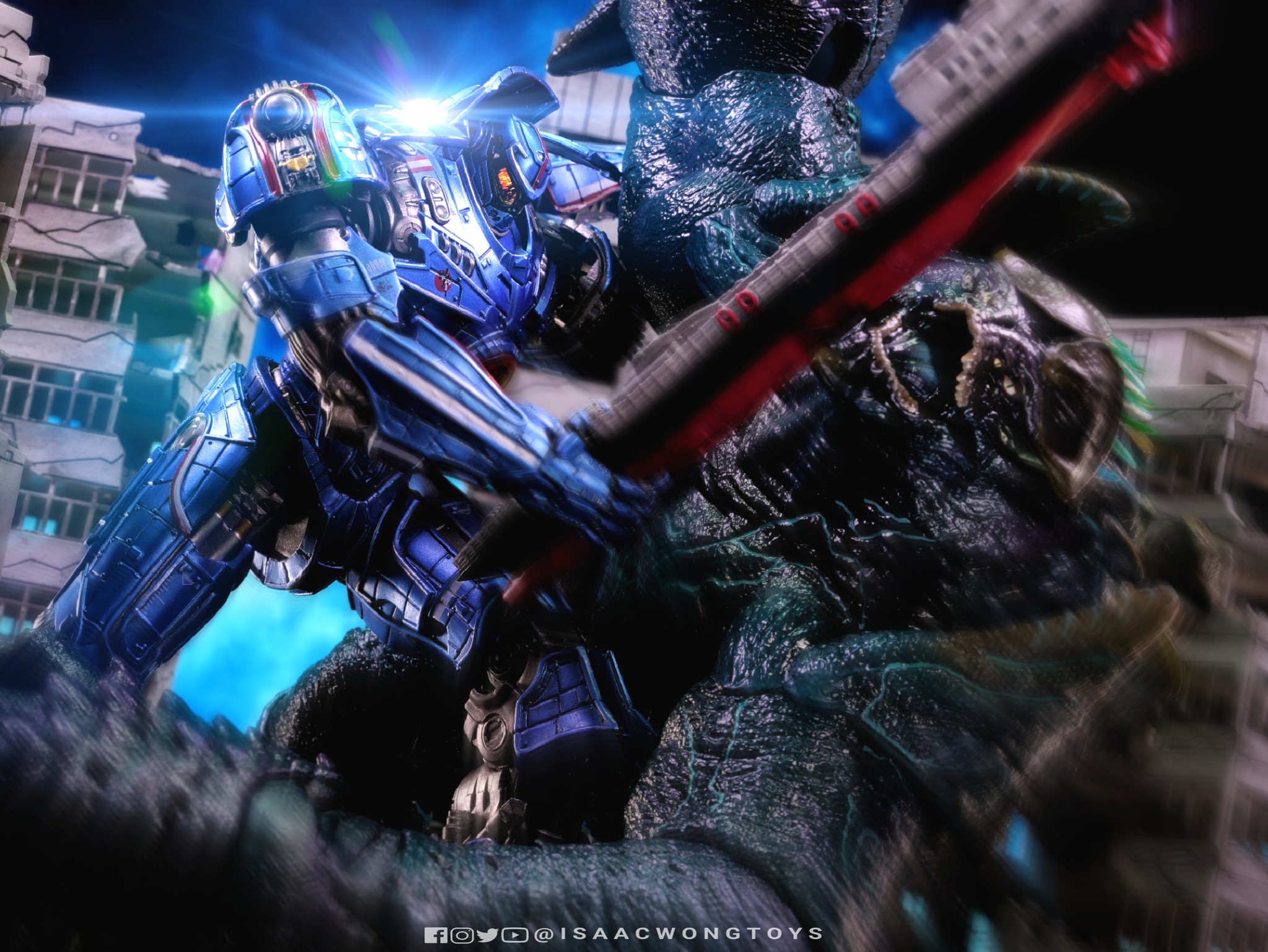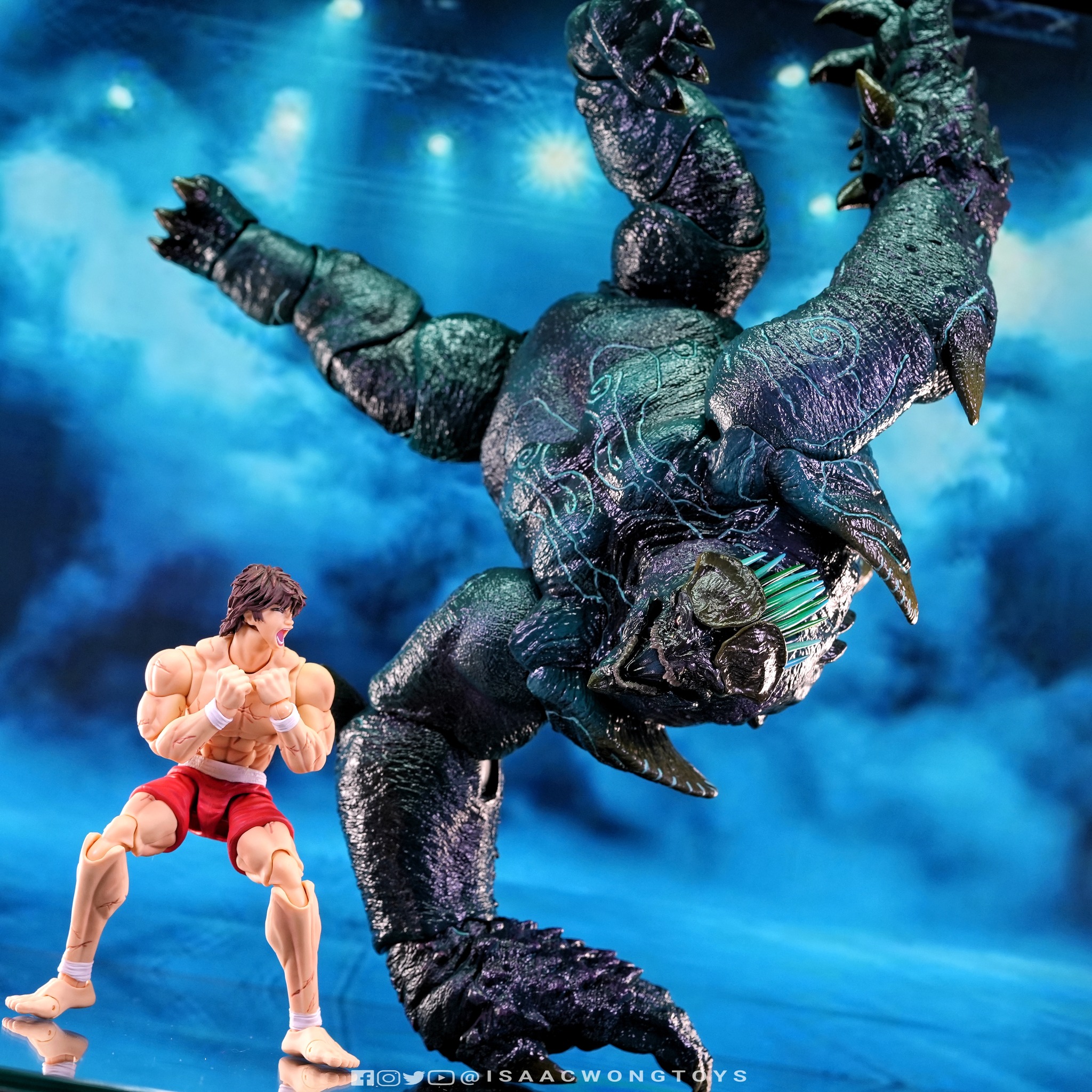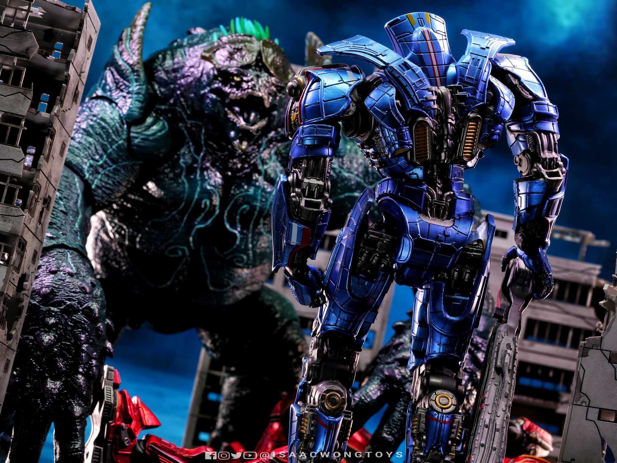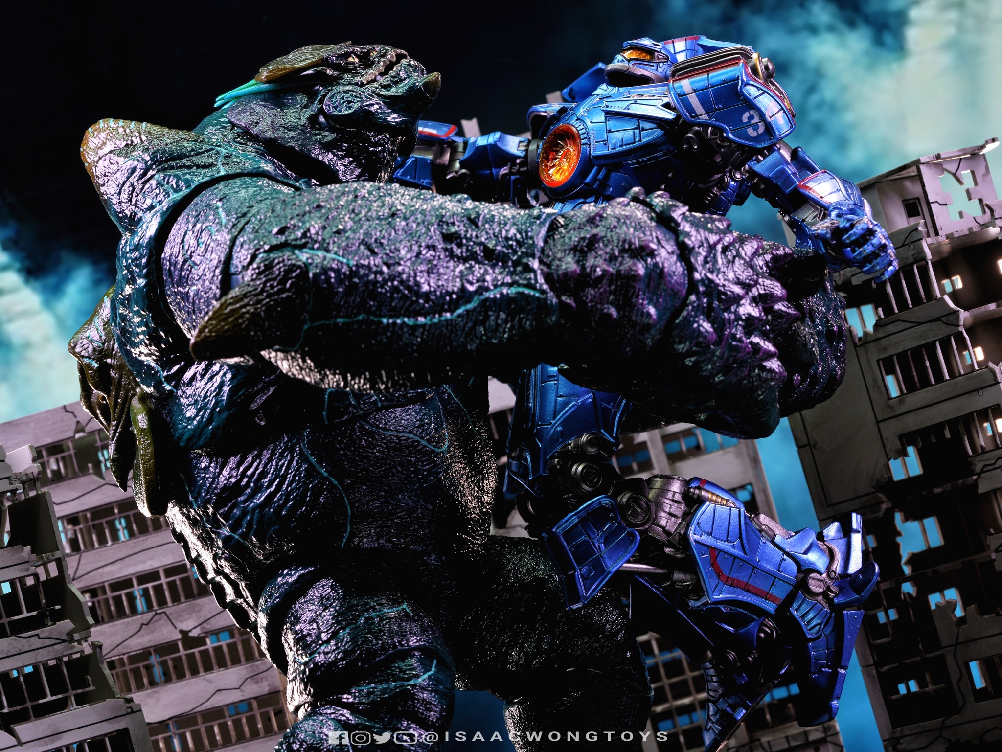 The figure arrives in packaging notably larger than that of Crimson Typhoon and Gipsy Danger, reflecting the creature’s mass within the line. Once removed, the sculpt shows a head proportion significantly larger than earlier consumer iterations such as the NECA version. The body carries substantial weight, and articulation across the head, arms and legs allows more posing flexibility than expected for a creature of this structure.