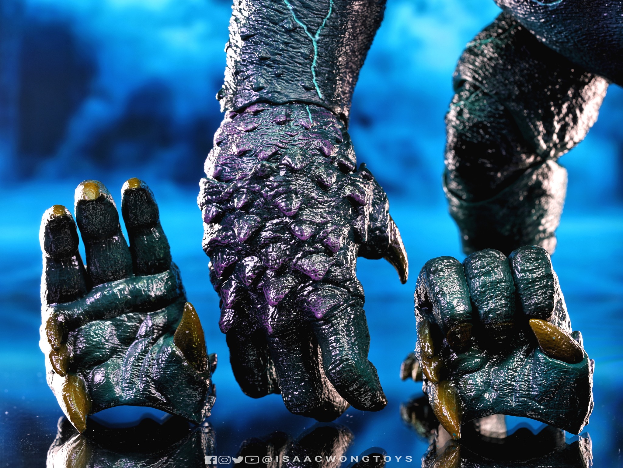 Leatherback includes its main body and an additional set of interchangeable hands. The articulation system enables grounded poses as well as upright stances, with reinforced wrist joints supporting ape-like grounding postures. The figure also stands on both legs without additional support. Sculpted elements capture the kaiju’s distinctive bulky silhouette, forward posture and facial structure, while the jaw opens to a wide range of motion. Even without full extension, Leatherback stands visibly taller than the line’s Jaeger releases.