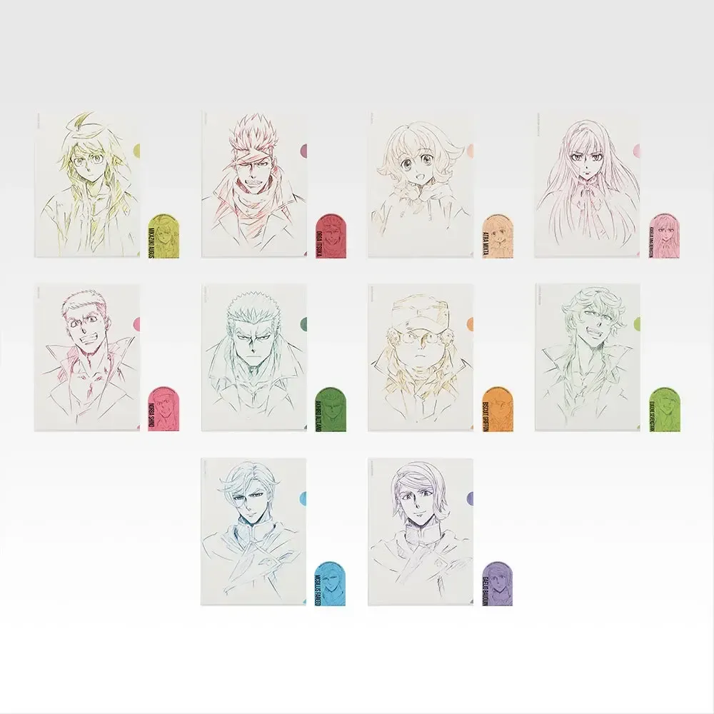 Prize H features clear file and sticker sets with newly illustrated designs, available in 10 selectable variants. Each set includes an A4 clear file and a sticker measuring approximately 9 cm.