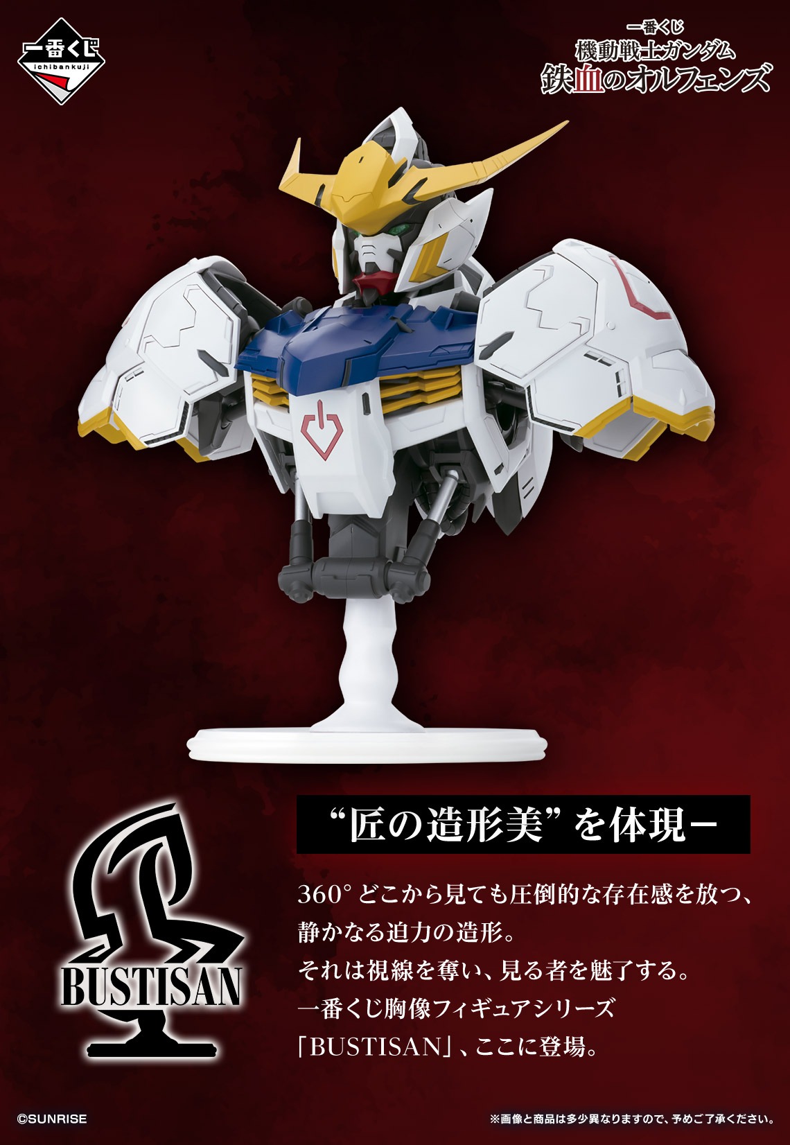 Prize A features the Gundam Barbatos BUSTISAN, standing approximately 18 cm tall as a single variant. Part of the BUSTISAN series, the bust is designed for full 360-degree display, with detailed sculpting throughout.