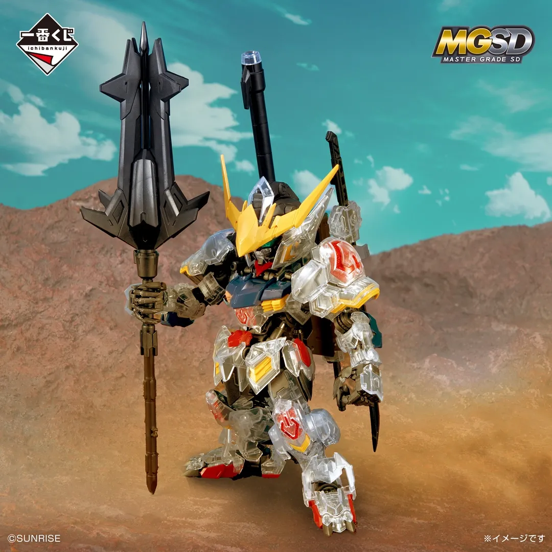 Prize C features the MGSD Gundam Barbatos in a Solid Clear finish, standing approximately 11.5 cm tall as a single variant. This version is presented in a limited colour exclusive to Ichiban Kuji.