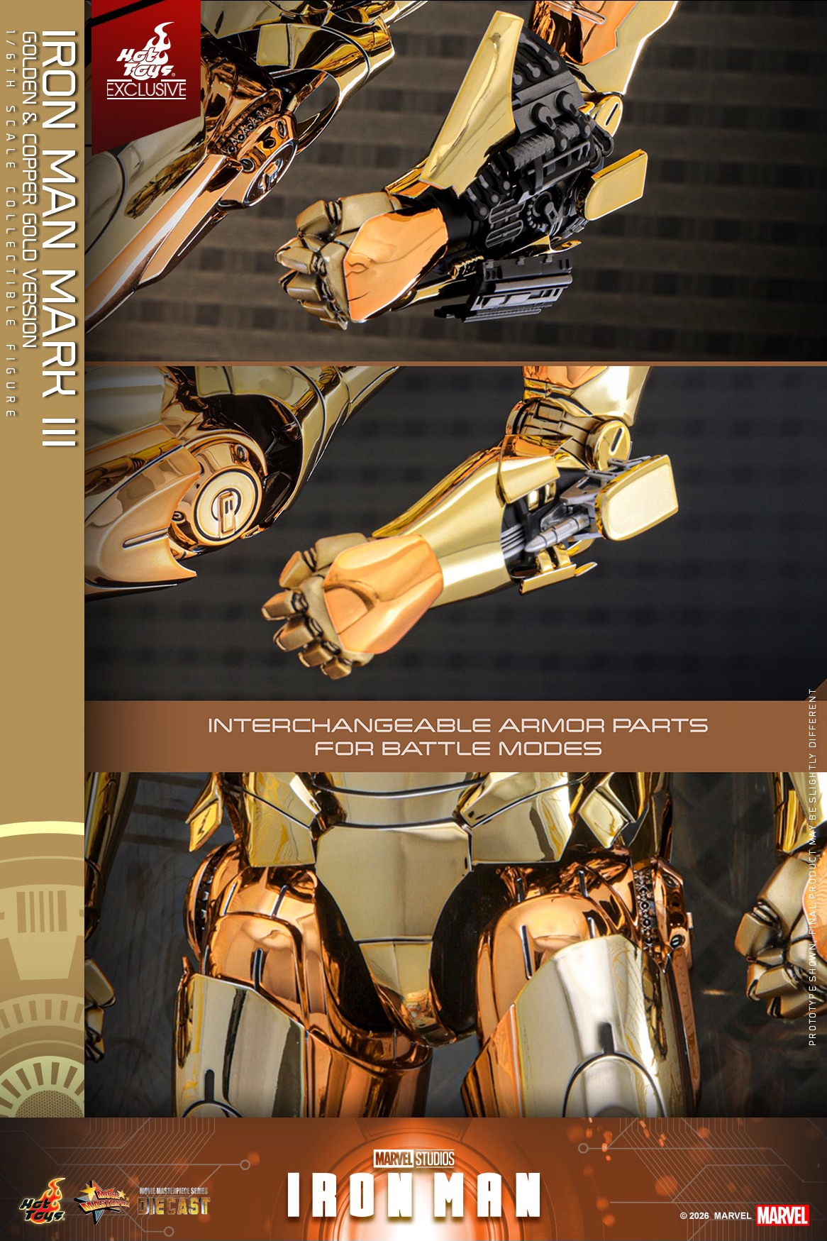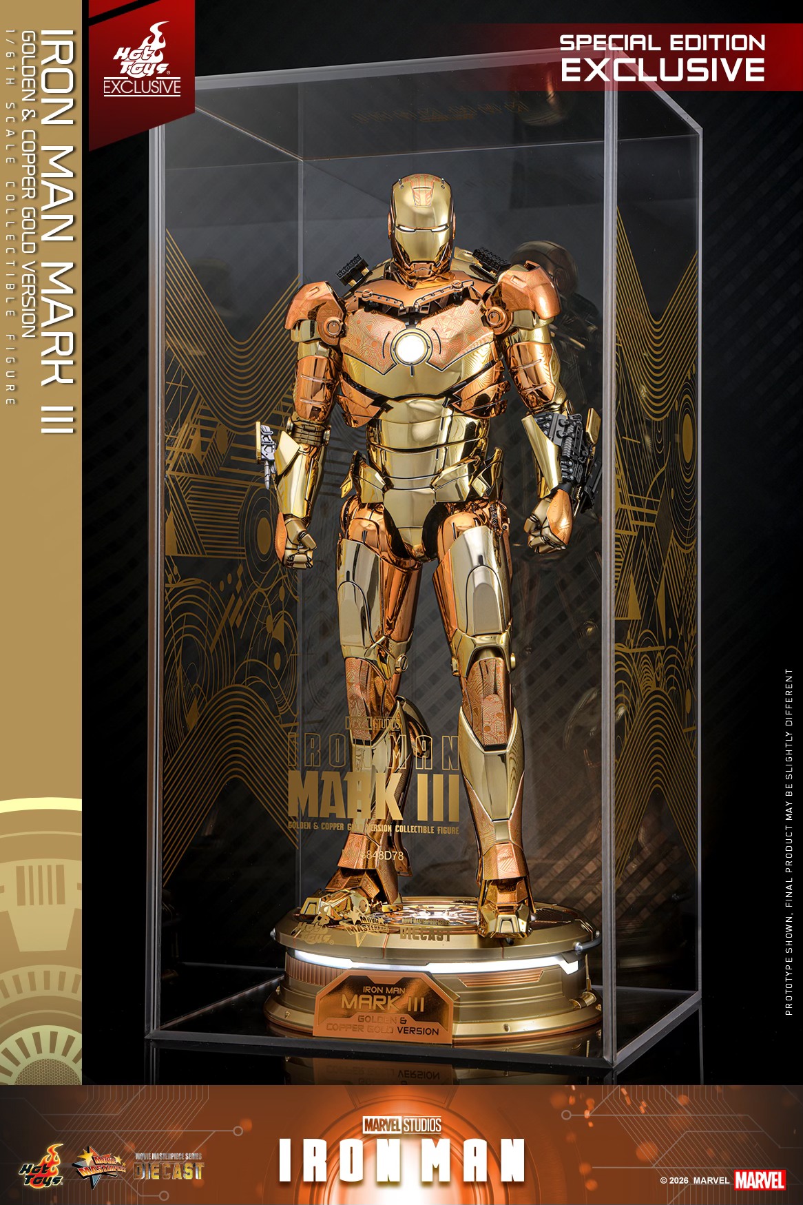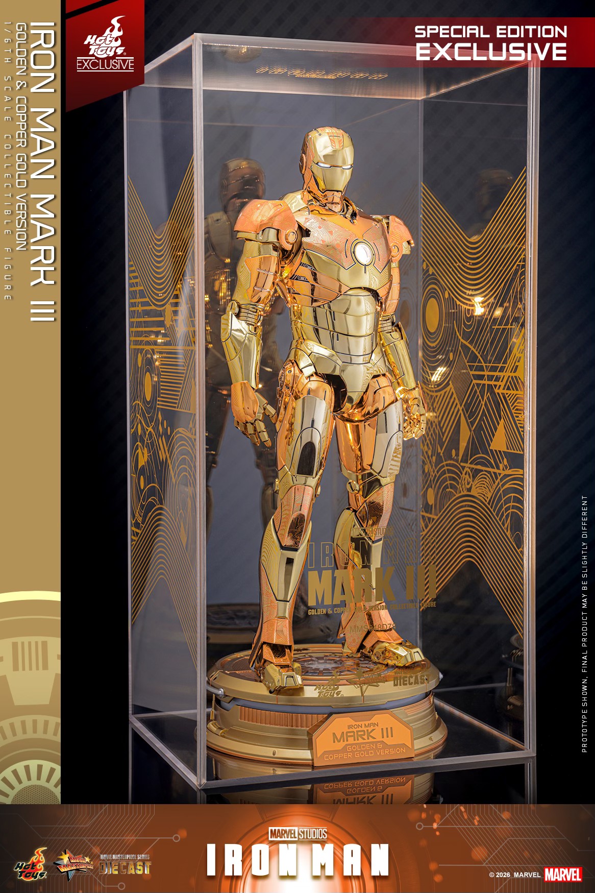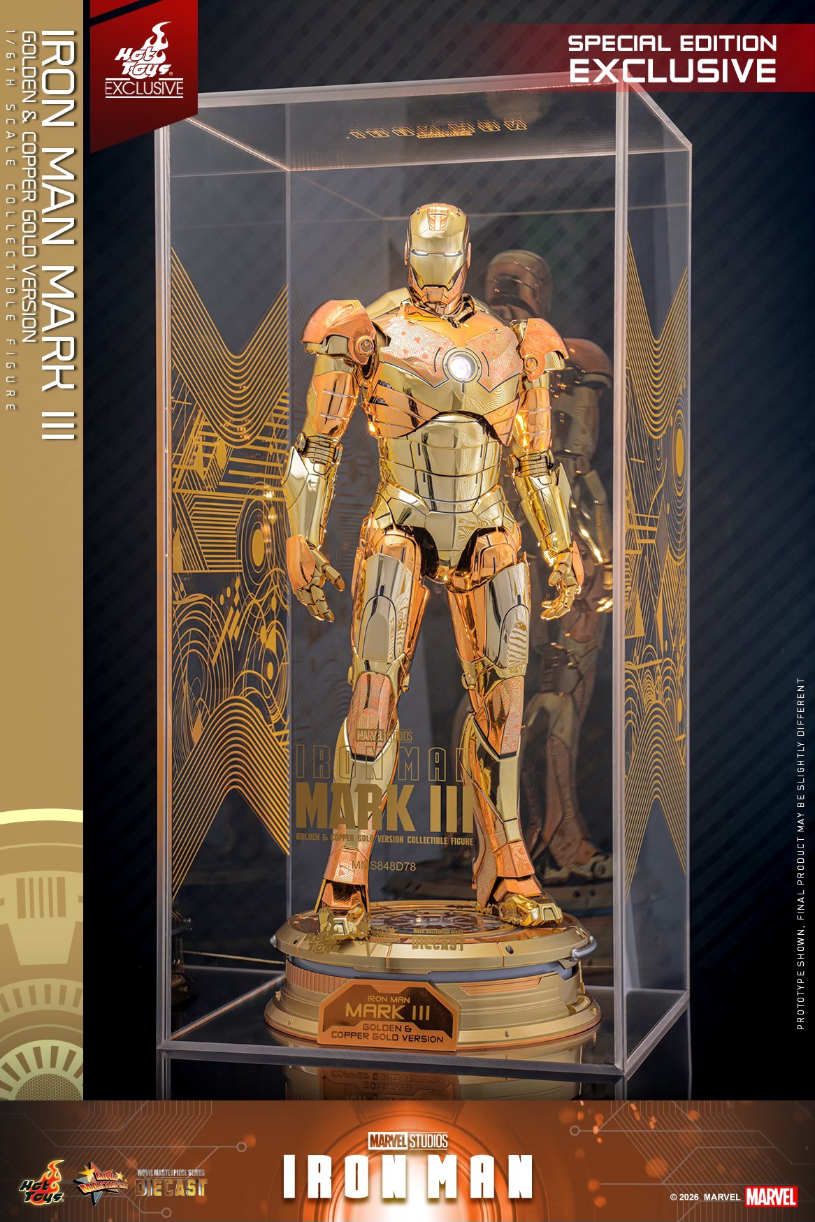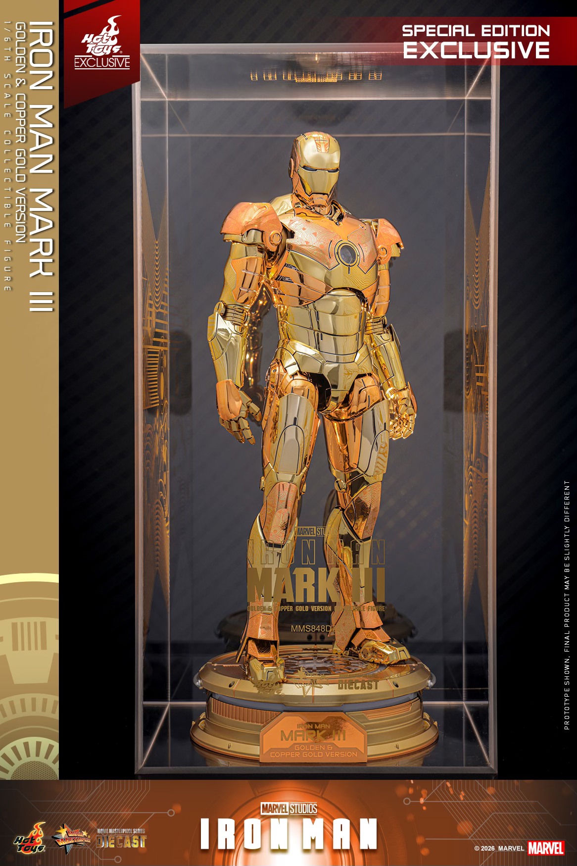 The Iron Man Mark III Golden and Copper Gold Version 1/6th scale collectible figure is planned for release between Q1 and Q2 of 2026, with availability determined by regional allocation and edition type.