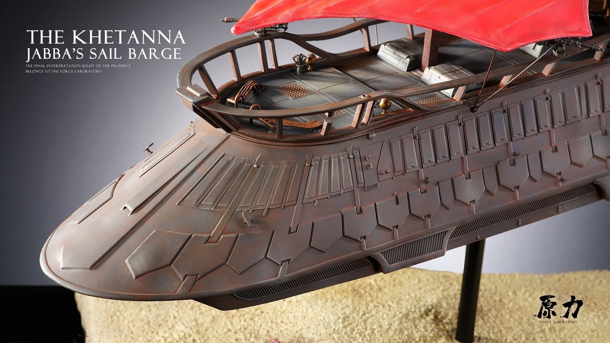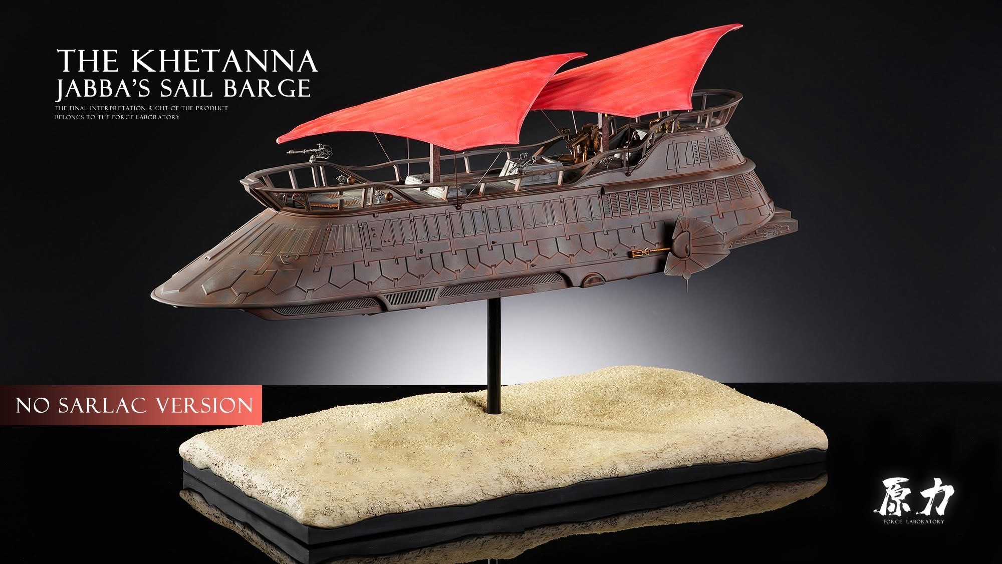 From the scorched dunes of Tatooine comes a new large scale centrepiece, as The Force Laboratory unveils its 1/40 scale Khetanna collectible statue, recreating Jabba the Hutt’s infamous sail barge in physical form. Known as the mobile palace of the galaxy’s most feared crime lord, the Khetanna is presented here as a detailed static display piece, capturing the layered hull structure and imposing presence of the vessel seen in Return of the Jedi.