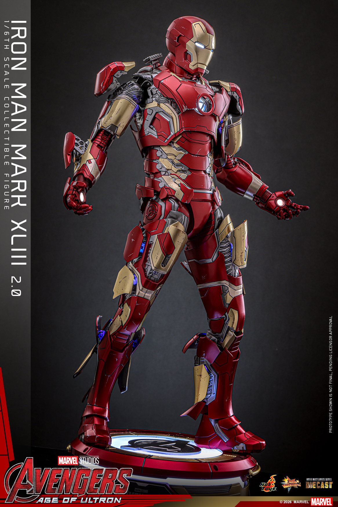 The Avengers: Age of Ultron 1/6th scale Iron Man Mark XLIII (2.0) Collectible Figure will be distributed through authorised Hot Toys channels, with availability varying by region.