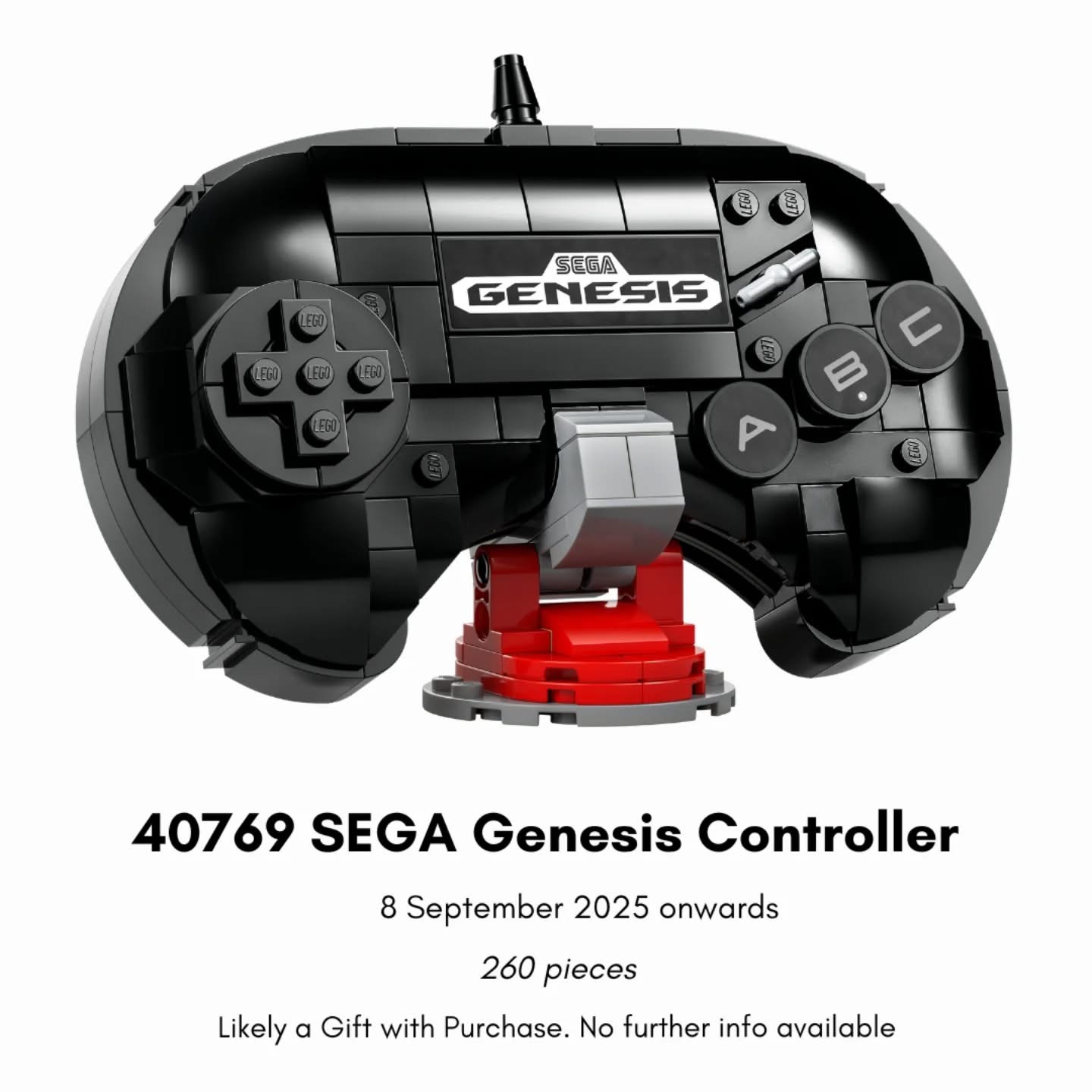 Set 40769 SEGA Genesis Controller has been revealed as LEGO’s next gift with purchase, available from 8 September 2025. Known as the Mega Drive Controller in some regions, this brick-built model pays tribute to SEGA’s classic gaming era.