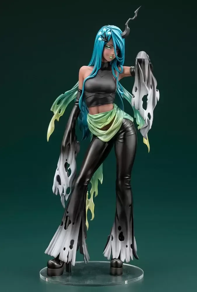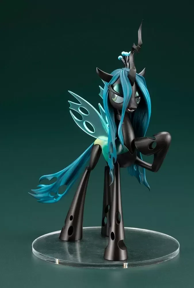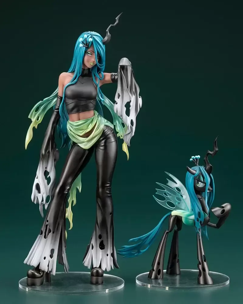 Queen Studios (under Kotobukiya’s Bishoujo line) has announced a new My Little Pony – Queen Chrysalis 1/7 scale statue, reimagining the changeling queen as a dark-fashioned figure while retaining her original pony form in a dual display.