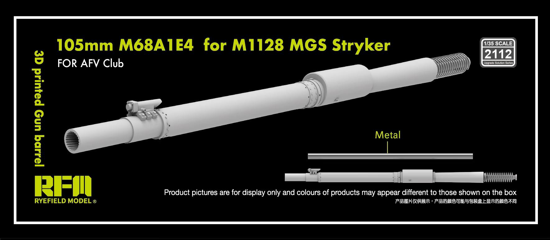 - RM-2112 – 3D-printed 105 mm M68A1E4 gun barrel, designed for AFV Club’s M1128 Stryker.