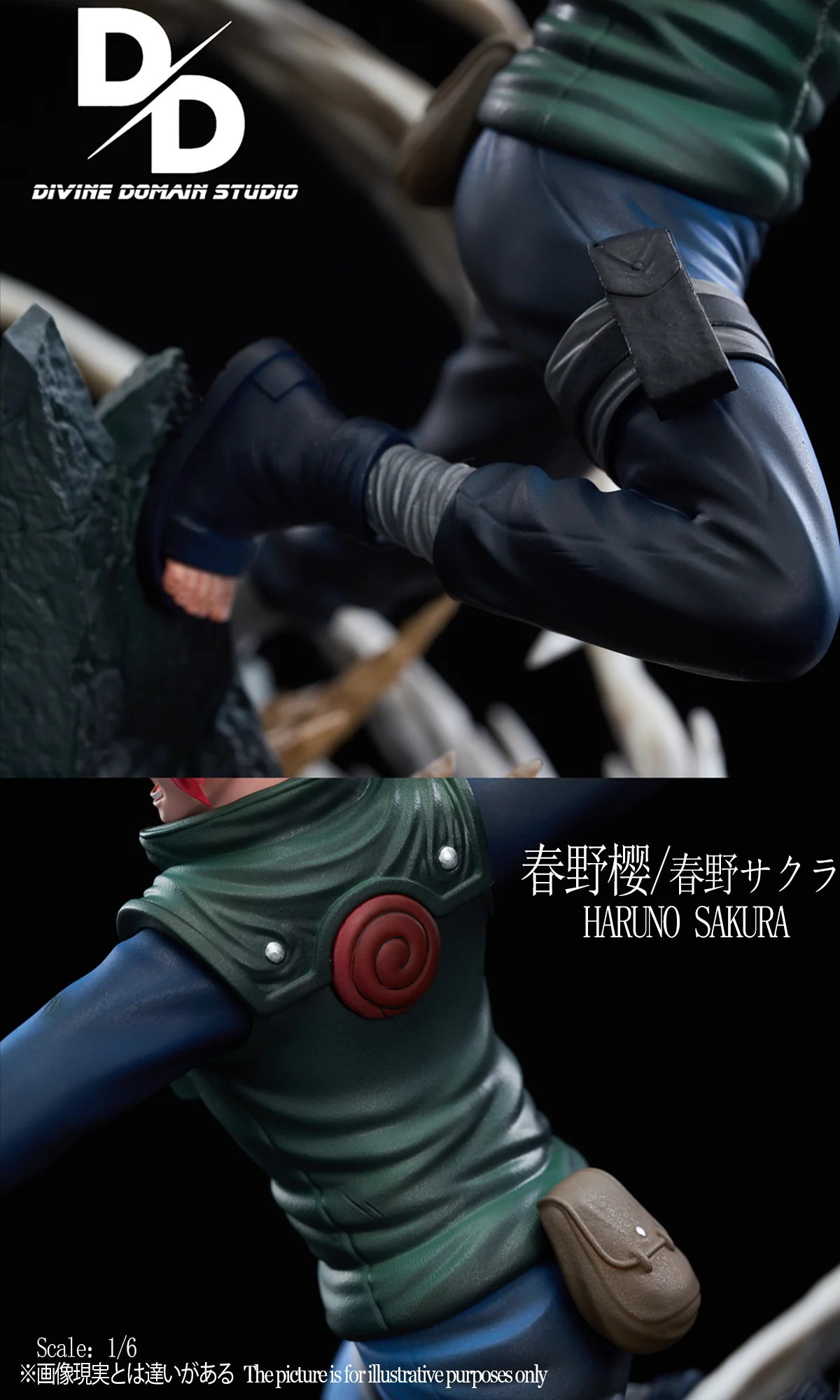 Sakura Haruno is presented in 1/6 scale as a new resin statue by Divine Domain Studio. The release translates her battlefield presence into a display-focused collectible, pairing a dynamic pose with a themed environmental base.