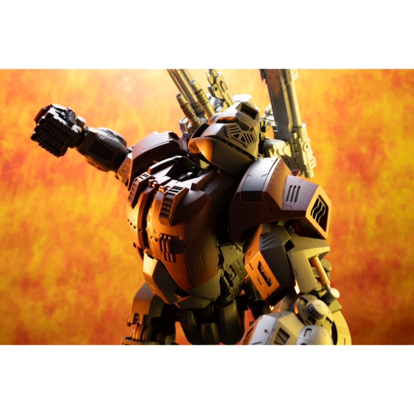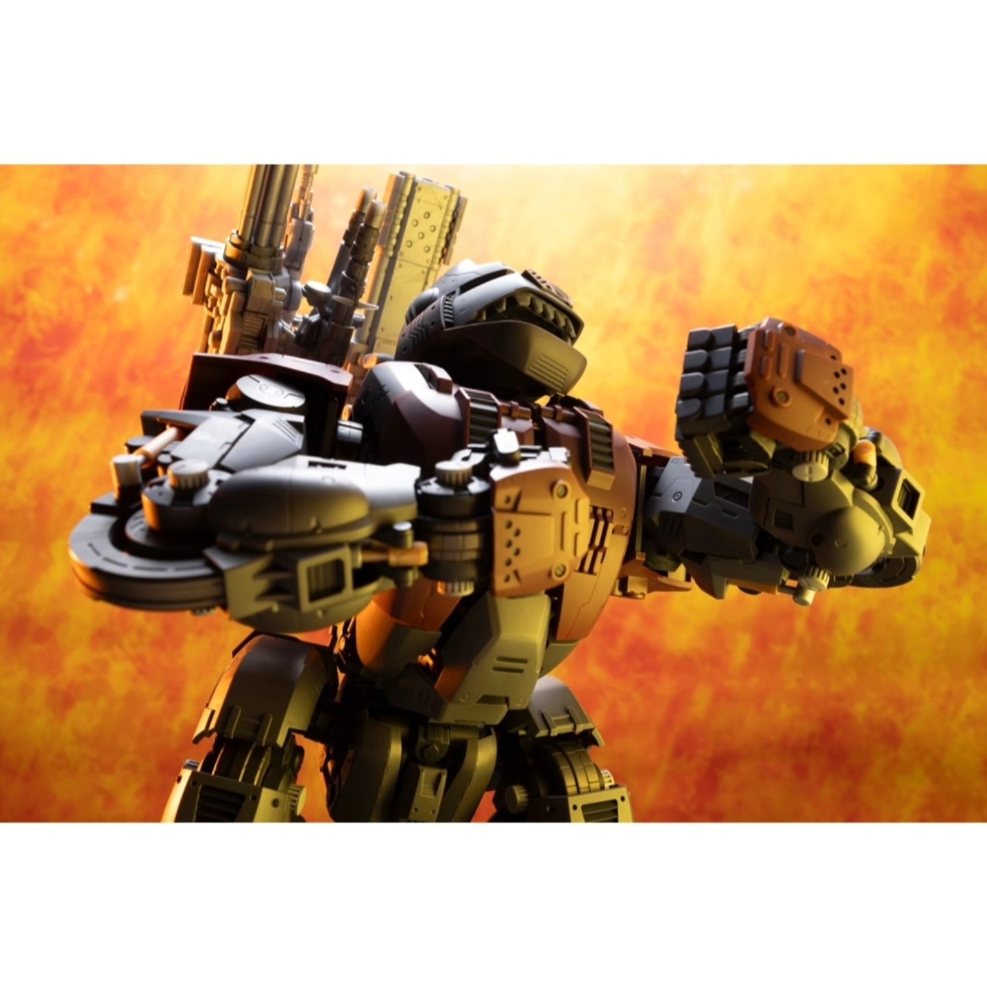 Included are the Iron Kong’s characteristic shoulder-mounted cannons and integrated heavy weapon systems. Articulated limb structures support grounded combat stances and display flexibility within the constraints of the large-scale frame.