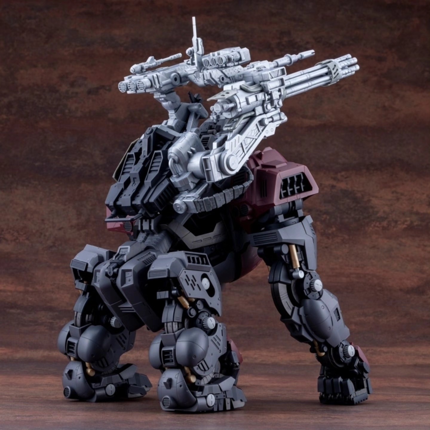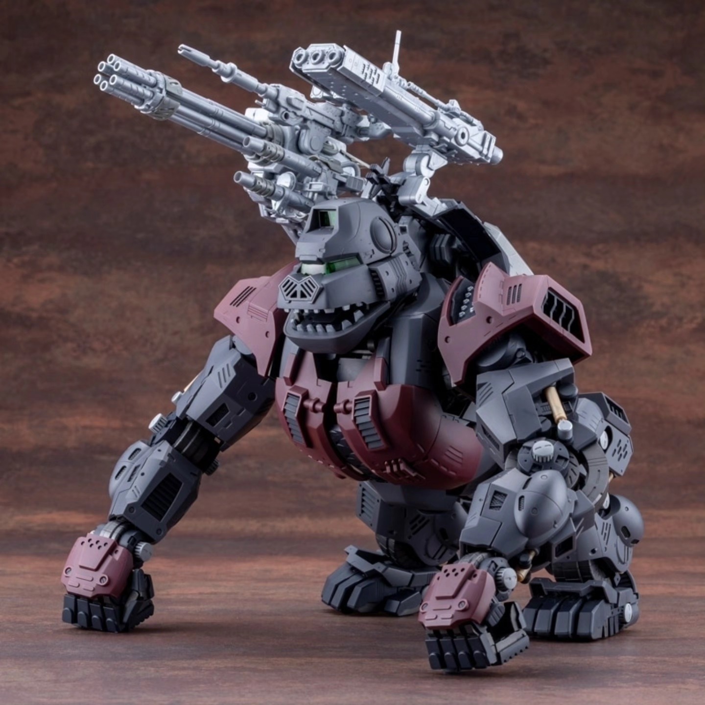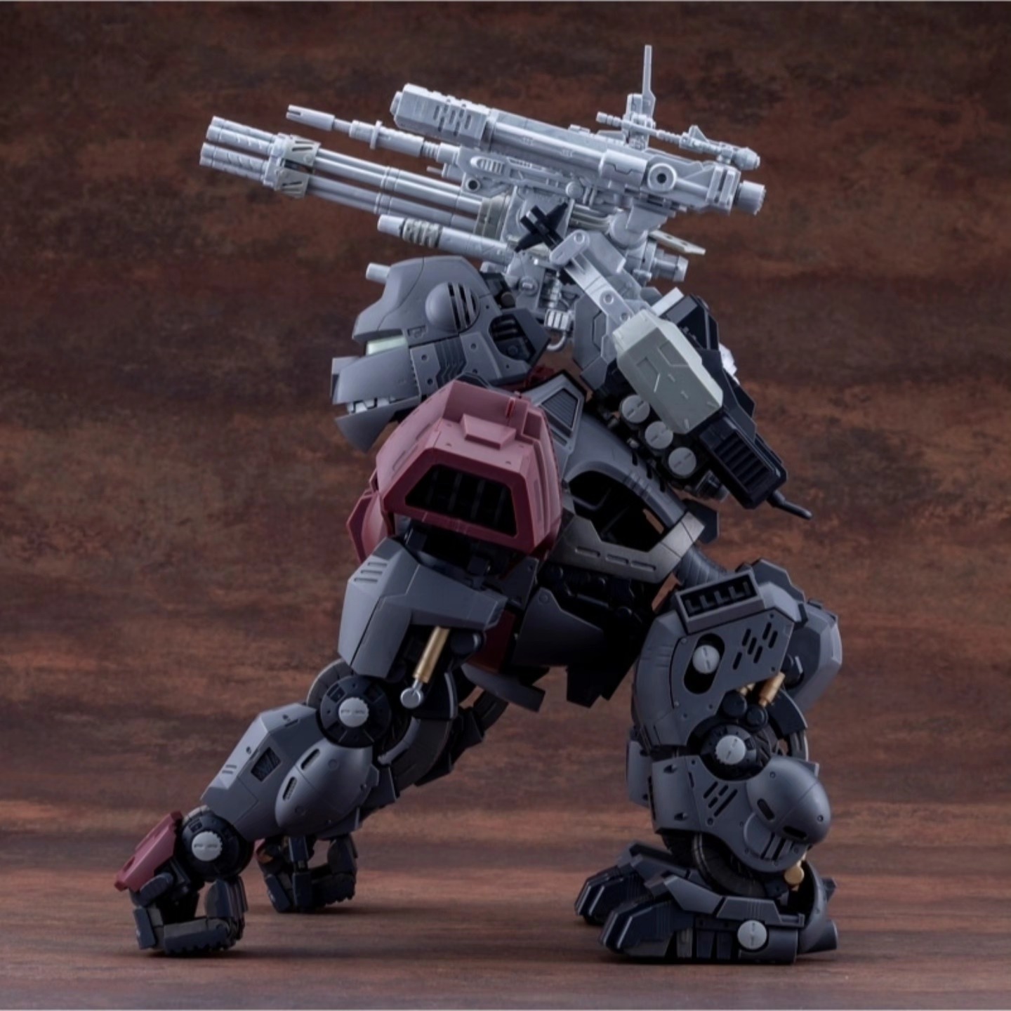 Kotobukiya has released updated images of the Zoids HMM Iron Kong Schwarz 1999 Recolour, scheduled for release in June 2026. The kit applies the 1999-era Schwarz colour configuration to the established Highend Master Model Iron Kong tooling, presenting the gorilla-type Zoid in darker military tones with revised surface contrast.