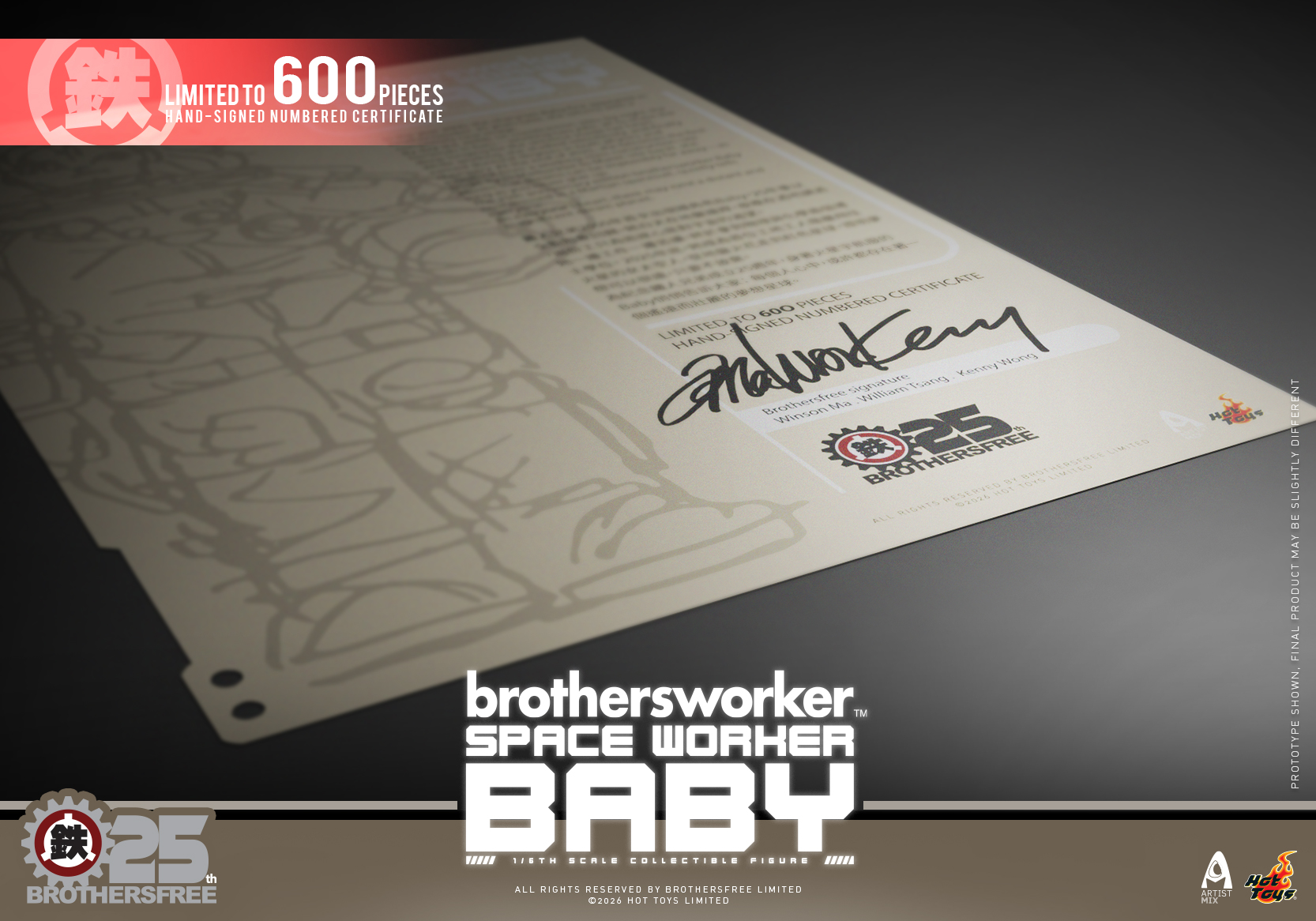 The Brothersfree x Hot Toys 1/6th scale Space Worker Baby (Brothersfree 25th Version) Collectible Figure will be available in selected markets as part of the 25th Anniversary collaboration programme. Availability will vary by region.
