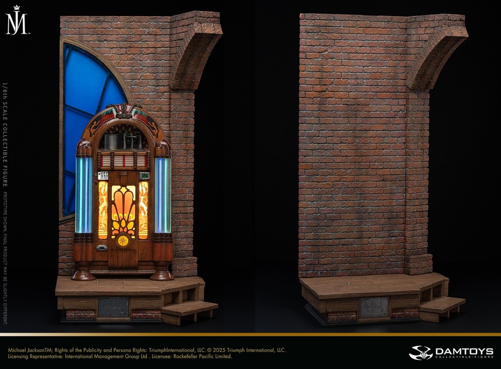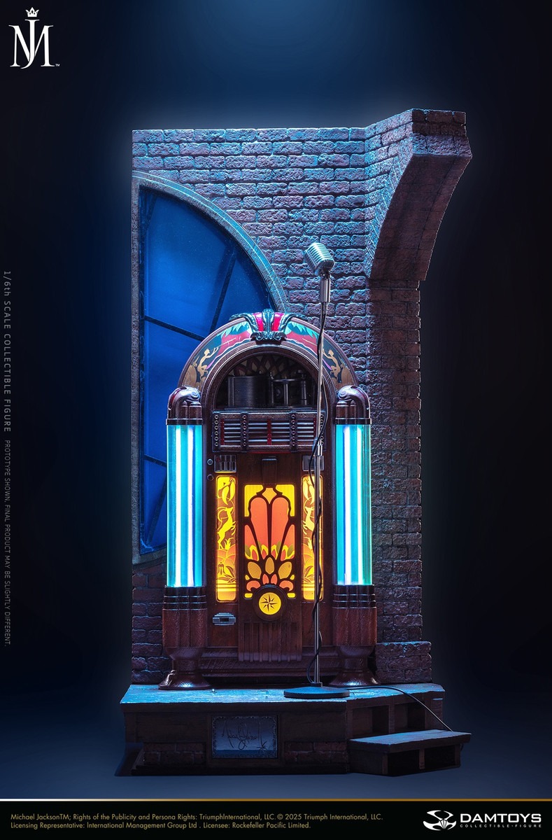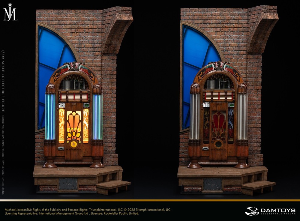 Shared accessories across both editions include a microphone, coin prop, and five US dollar props, allowing for scene-accurate display options. The Deluxe Edition expands on the presentation with an upgraded display base featuring an interchangeable backboard and an additional jukebox accessory, referencing the visual setting of the Smooth Criminal sequence. The Standard Edition includes a simpler display base without the additional environmental elements.