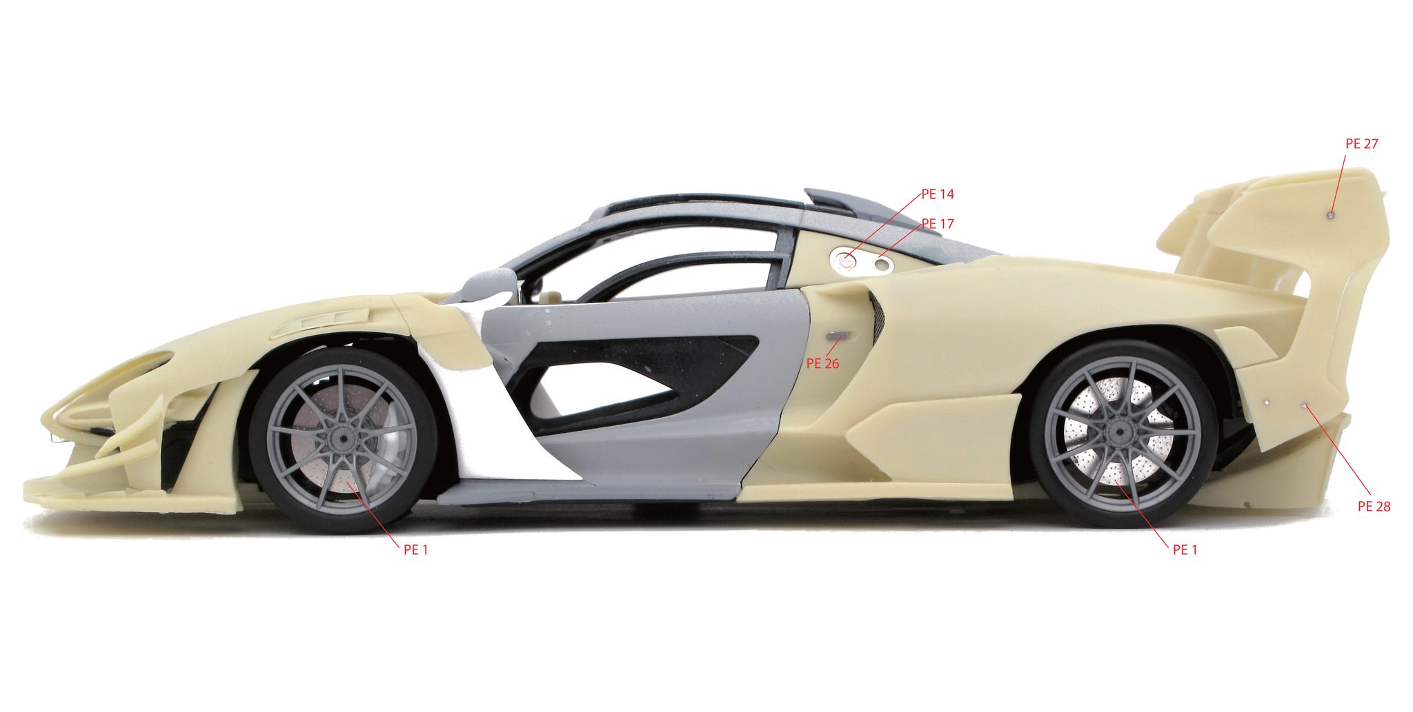 - Detail-up parts tailored for the Tamiya 1/24 McLaren Senna GTR kit