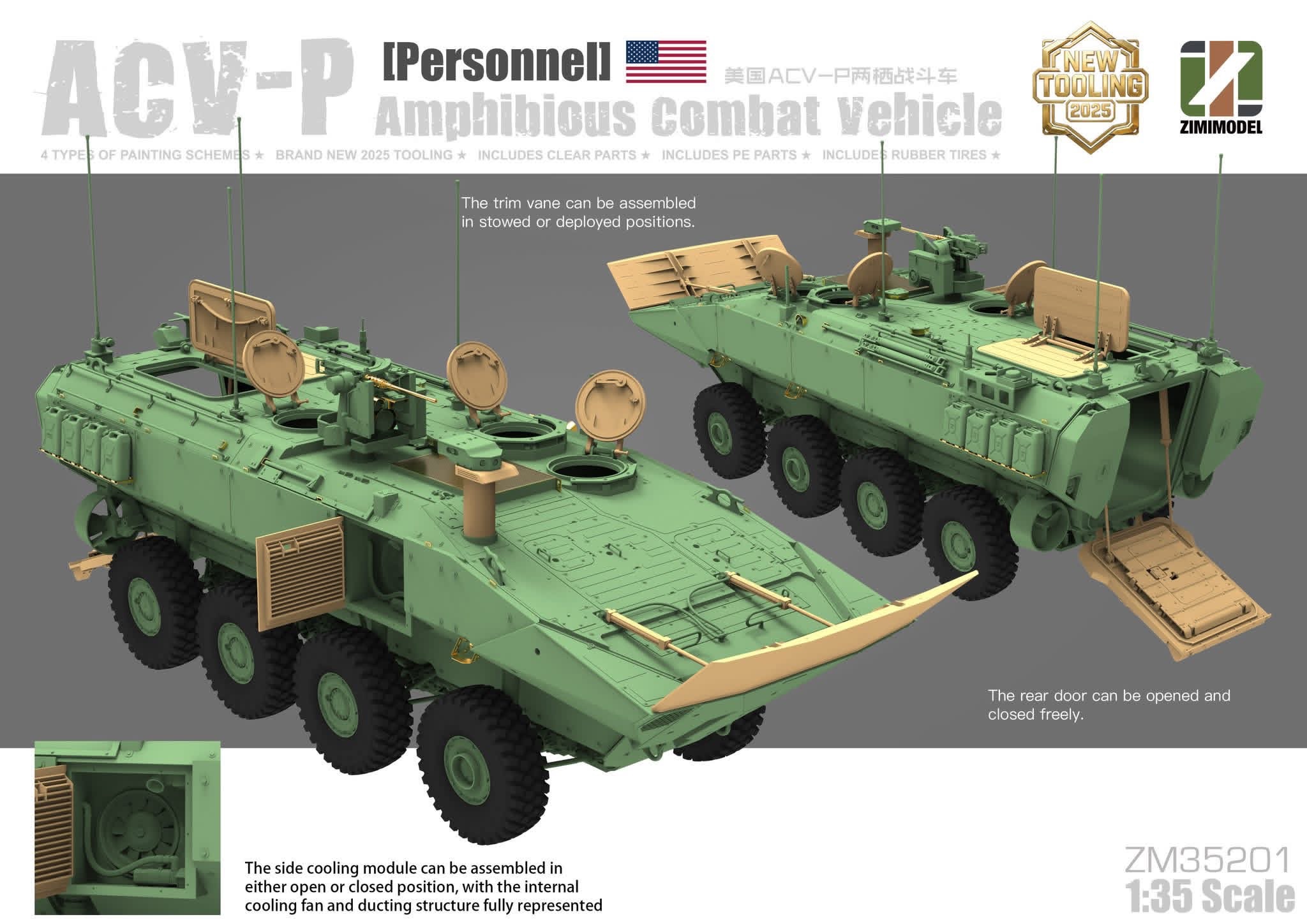 Zimi Model has opened pre-orders for the ZM35201 1/35 ACV-P Amphibious Combat Vehicle through selected hobby retailers. Pricing and regional availability have yet to be formally standardised and will depend on local distributors as release schedules are finalised.