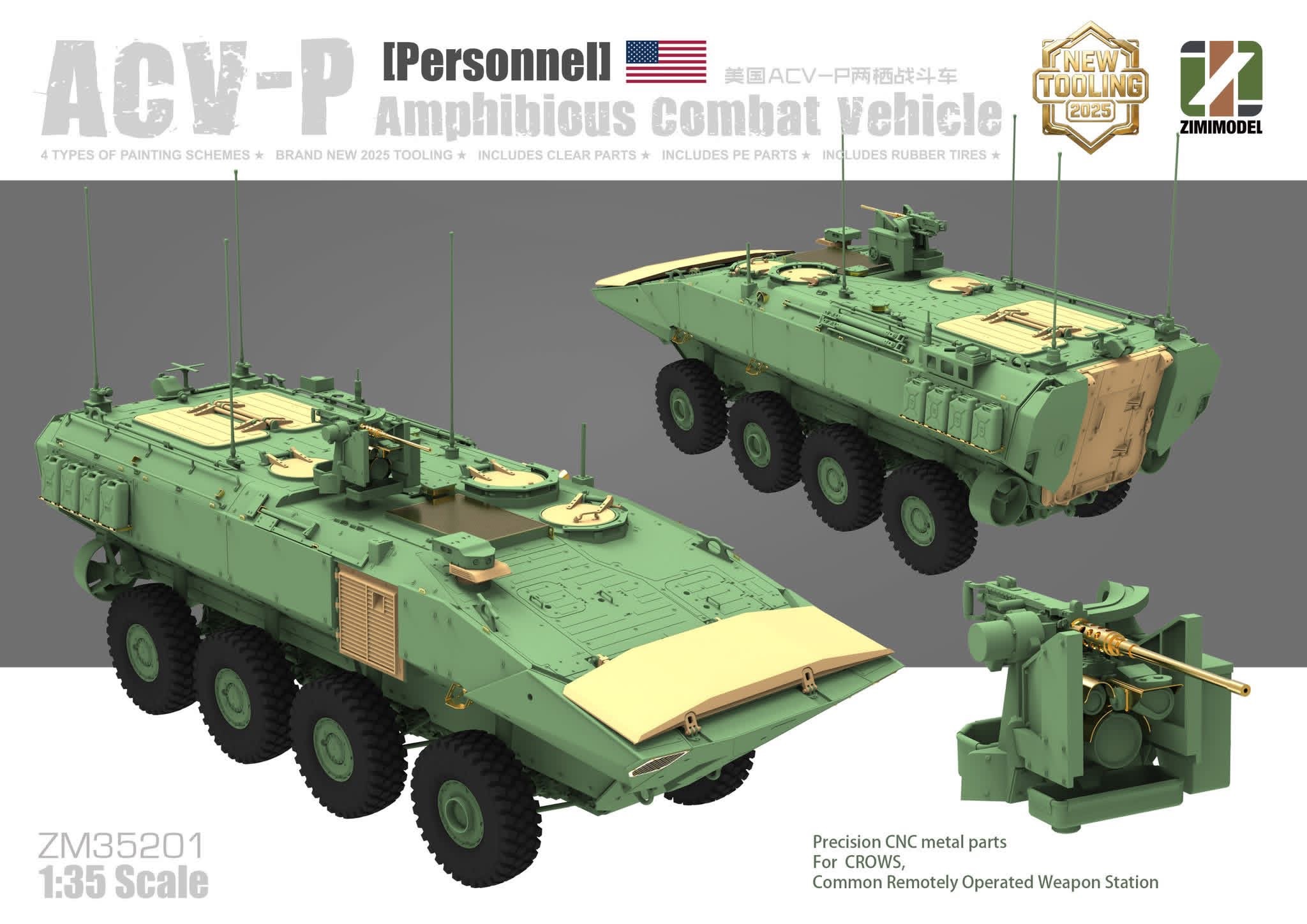 A modern amphibious platform enters the 1/35 scale lineup as Zimi Model confirms its latest release, the ZM35201 ACV-P Amphibious Combat Vehicle. Designed as a completely new 2025 tooling, this kit focuses on contemporary military accuracy while offering a flexible build intended to reflect the vehicle’s modular design and operational role.